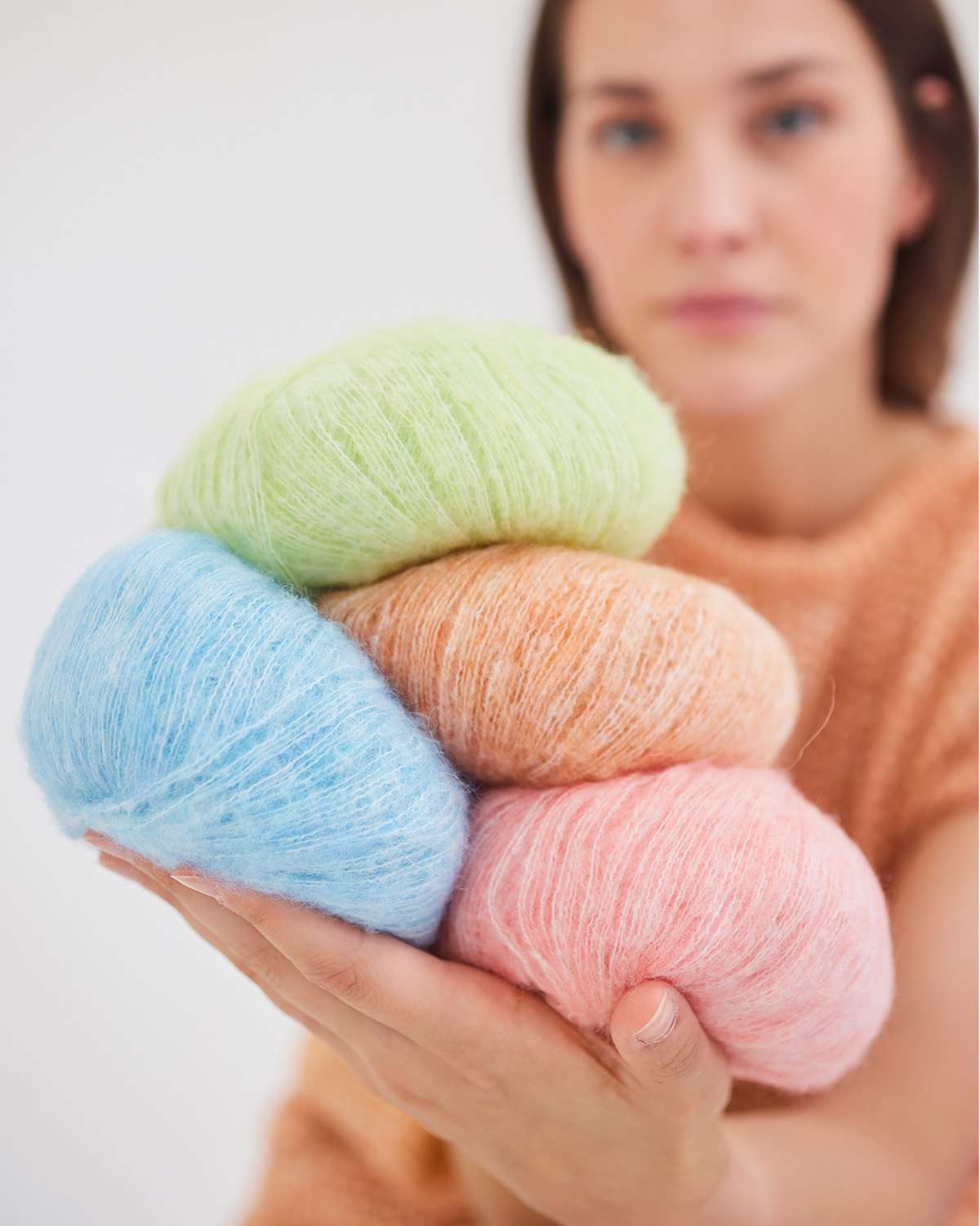 24 % Мериносовая шерсть, 20 % Альпака, 29 % Полиамид, 22 % Вискоза, 5 % маталическая фибра