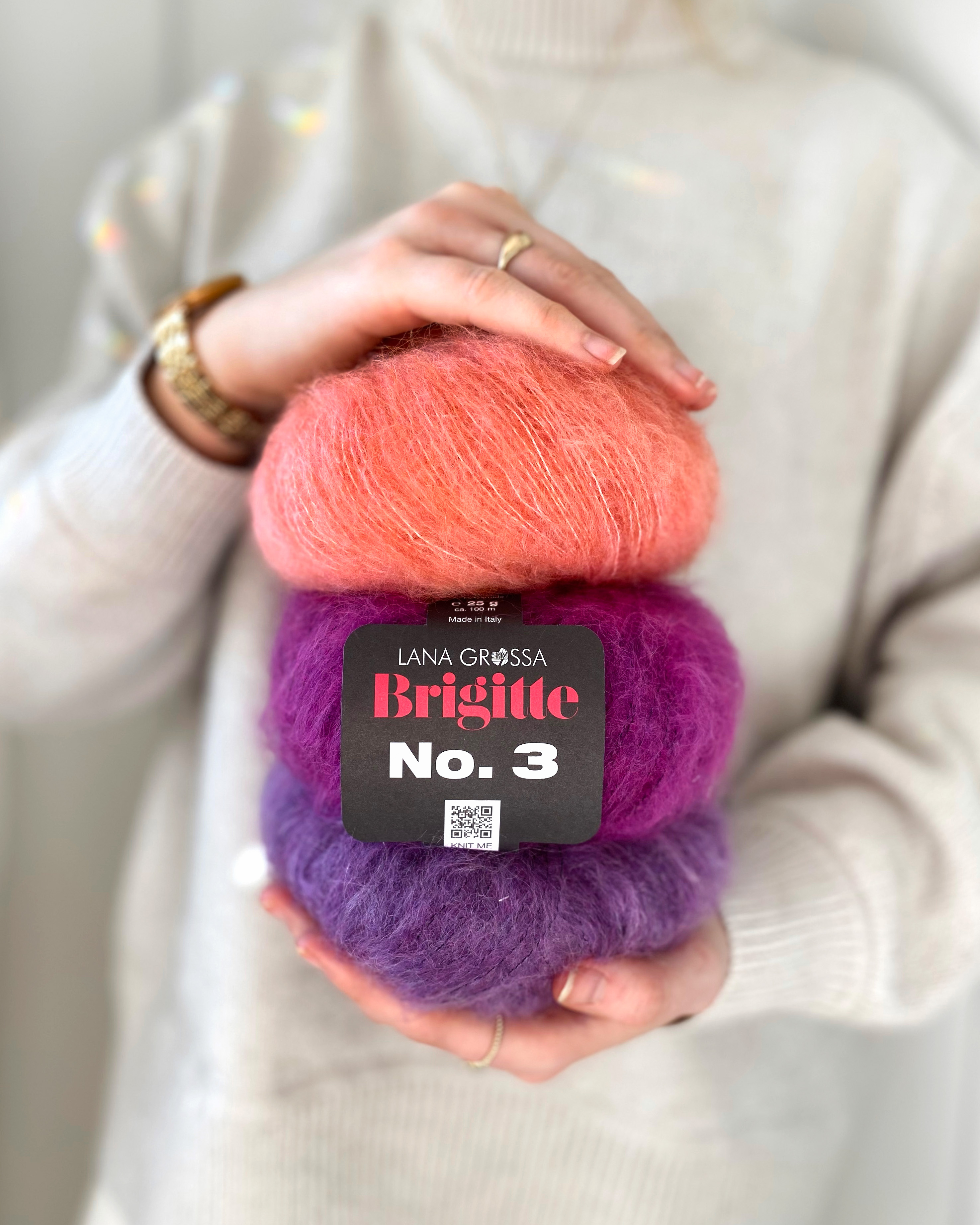 Brigitte No. 3 — это мягкая пряжа типа lace с благородным характером, изготовленная из тончайшего суперкид-мохера и мериносовой шерсти. Она сочетает в себе нежную пушистость с лёгкой прозрачностью и идеально подходит для женственных, воздушных вязаных изделий с элегантной лёгкостью. Используется ли она самостоятельно или в качестве сопровождающей нити — Brigitte No. 3 придаёт свитерам, шалям или кардиганам стильную, пушистую структуру с тонким и аккуратным полотном.