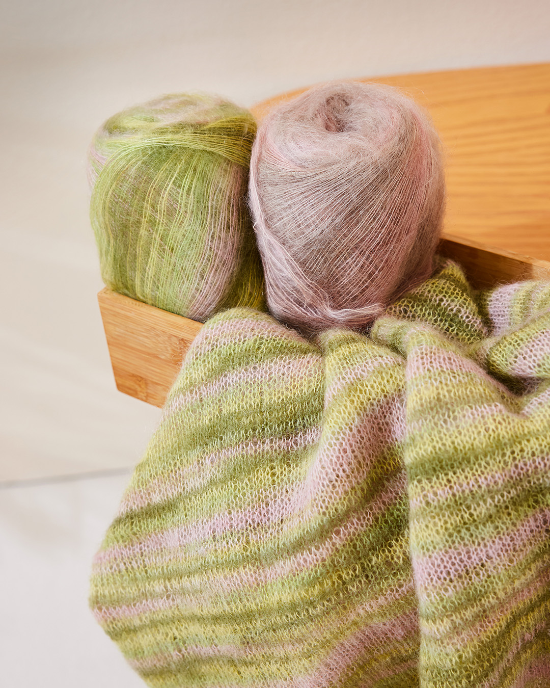 Воздушная, лёгкая пряжа с мягкой пушистостью. Сочетание натурального хлопка и тончайшего мохера придаёт ей лёгкую прозрачность, приятную тактильность и элегантное сияние. Идеально подходит для шалей, лёгких свитеров, летних кардиганов или в качестве сопровождающей нити, чтобы добавить проектам нотку лёгкости и текстурности.