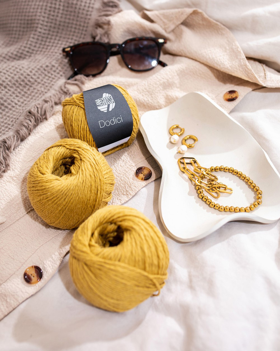Dodici — это лёгкая летняя пряжа с живой структурой и приятным сухим прикосновением. Высококачественная смесь хлопка, вискозы и льна обеспечивает мягкое полотно с натуральным характером и деликатным блеском. Благодаря текстурированной поверхности каждое вязаное изделие выглядит особенно свежо, современно и вне времени.