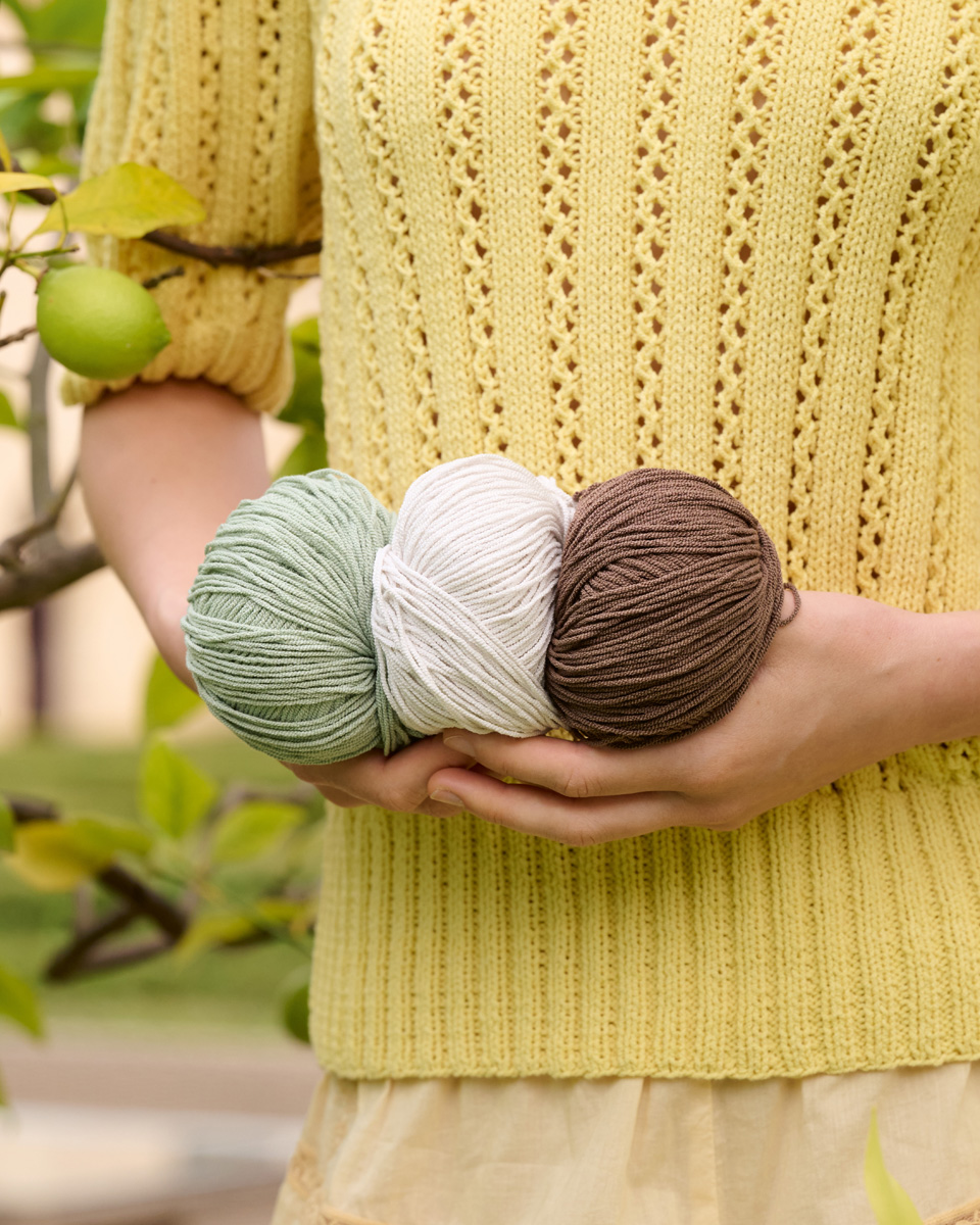 Шесть сильно скрученных одинарных нитей придают тонкой креповой пряже структуру и равномерный рисунок стежка, а полиамидные волокна обеспечивают дополнительную стабильность.