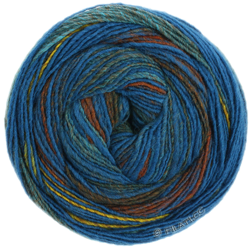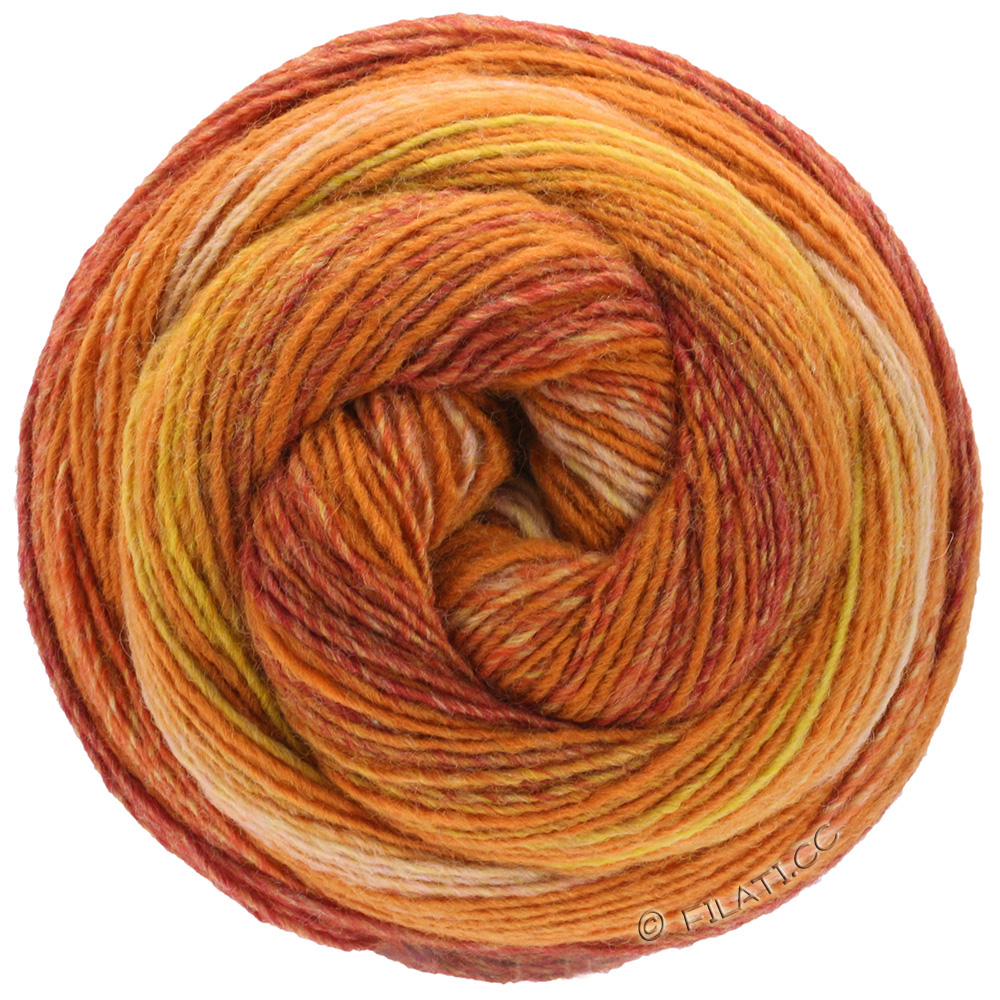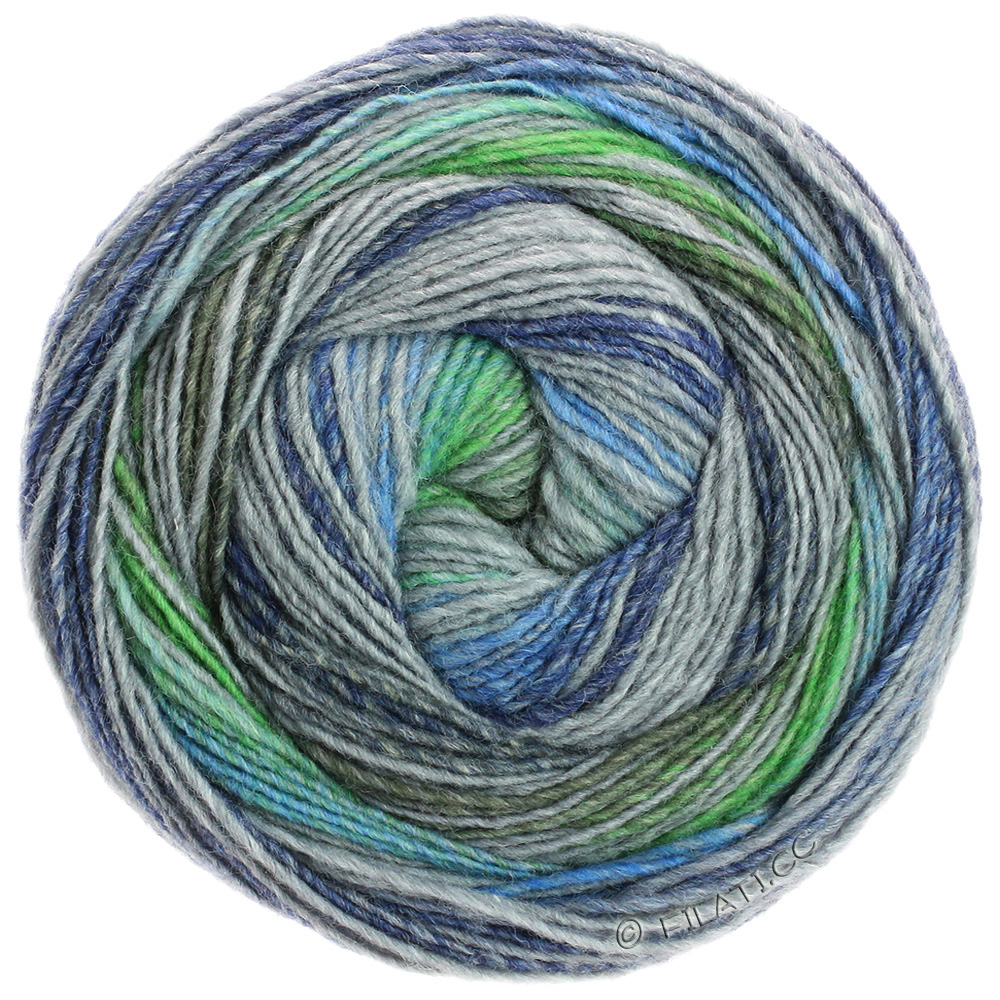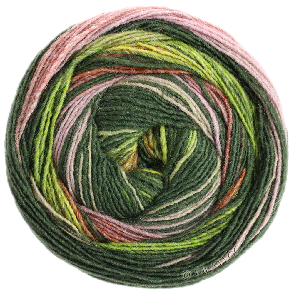 Слегка скрученная пряжа с яркими, гармоничными цветовыми градиентами, которые разбиваются поразительными полосами