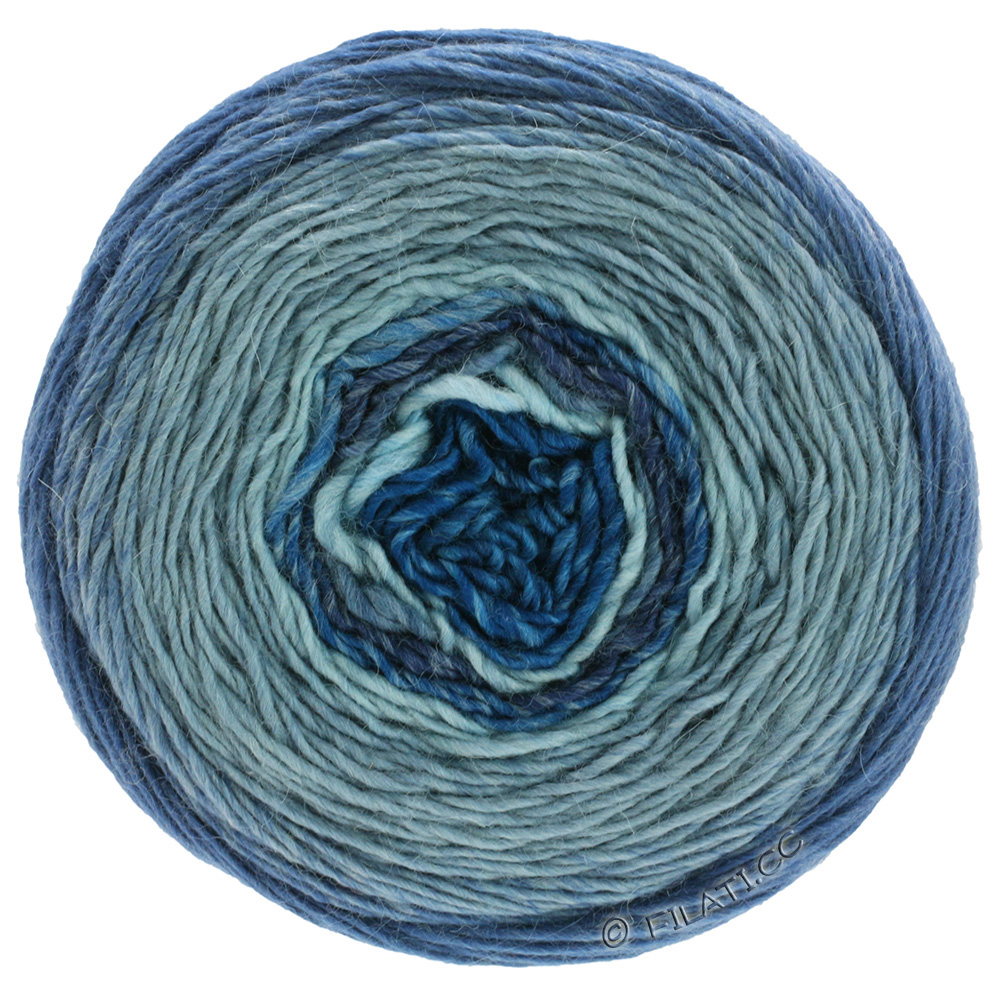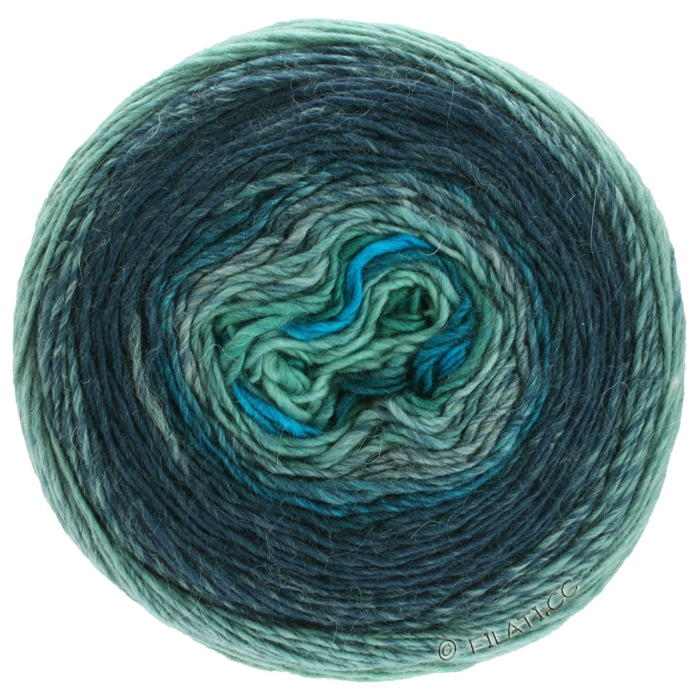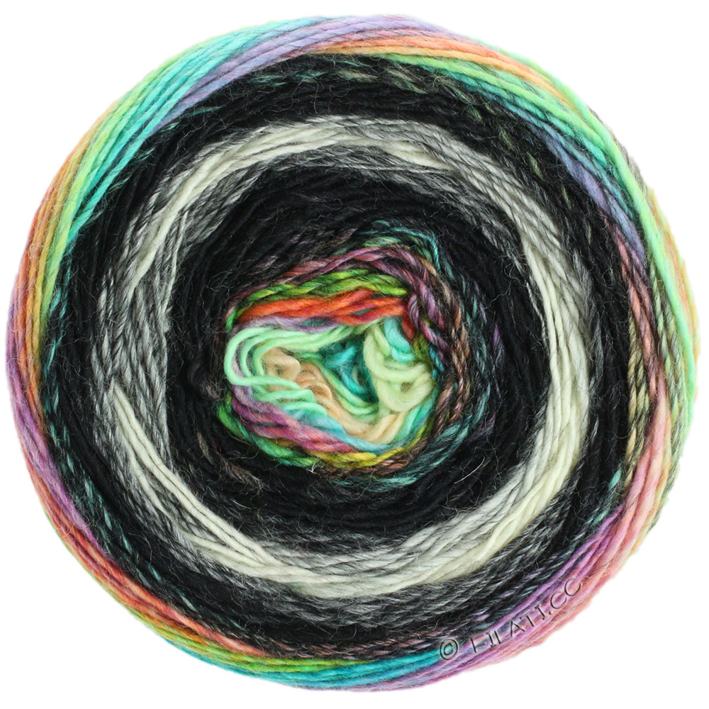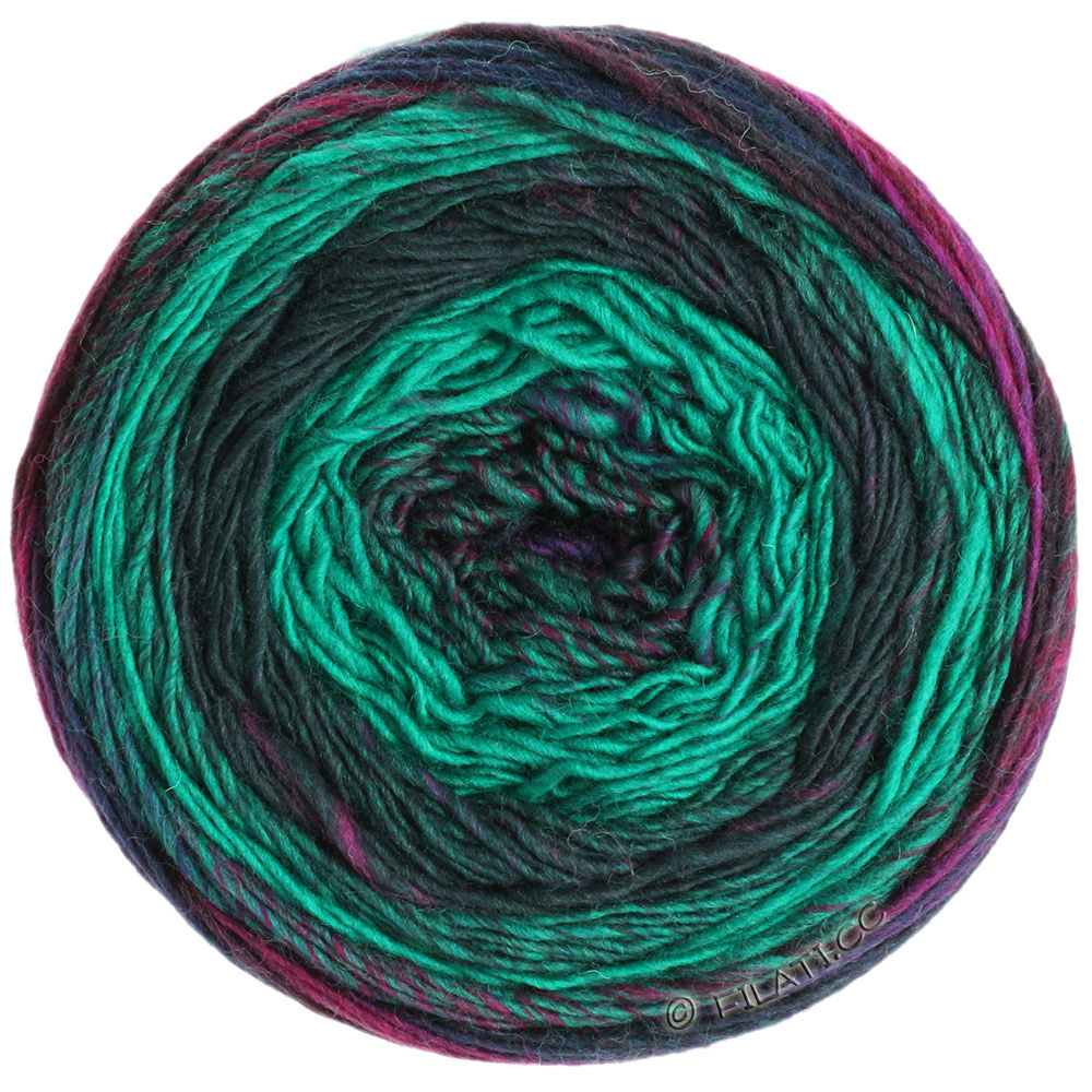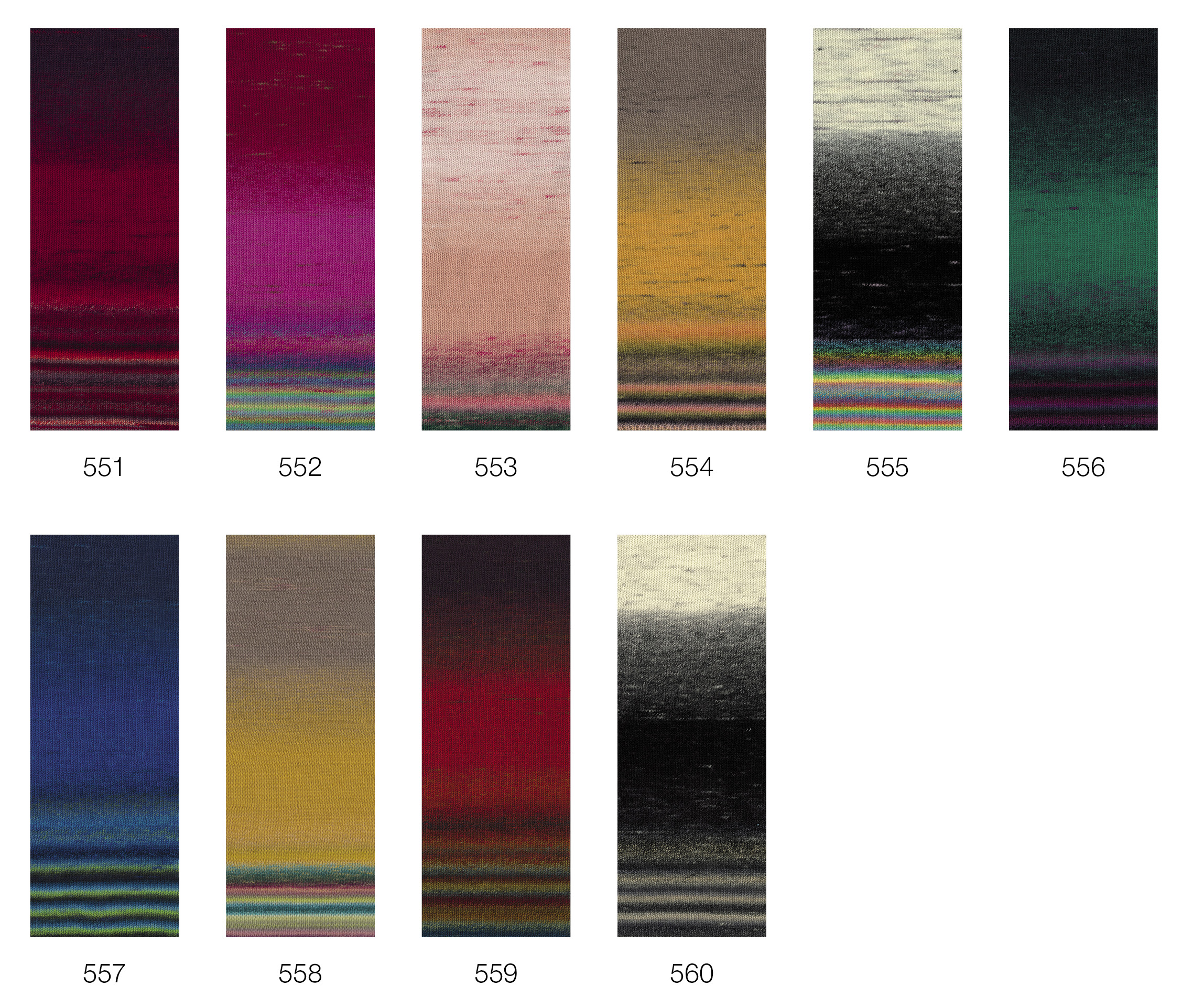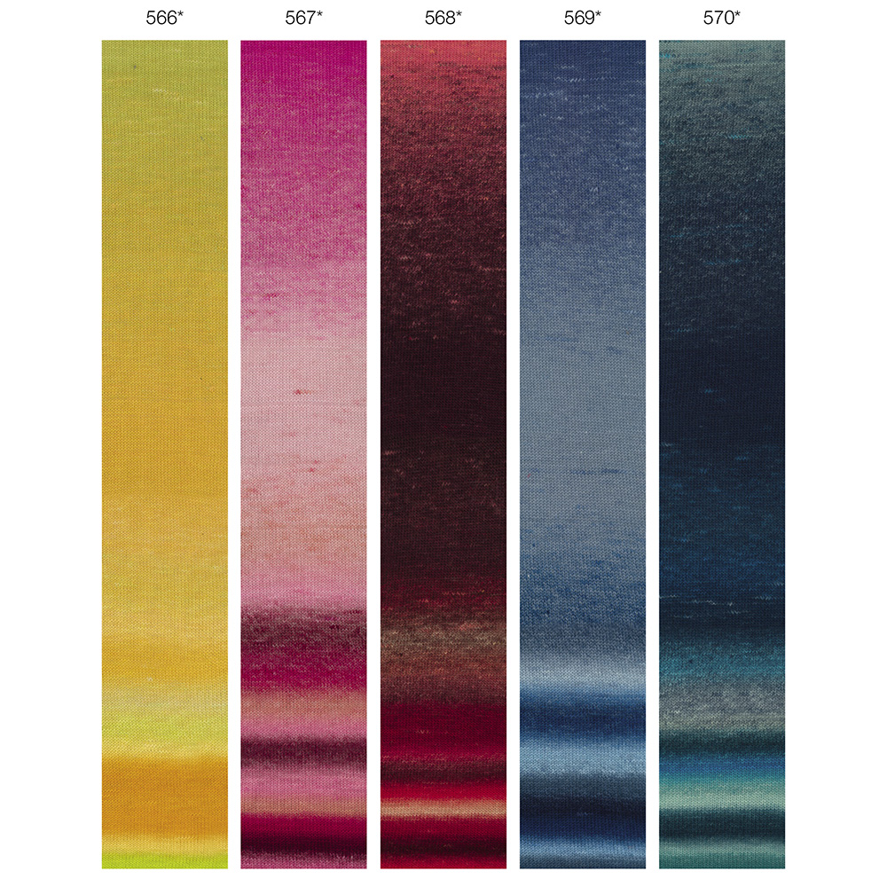 Впечатляющая фитильная пряжа, изготовленная из 100% экстра-тонкого мериноса, узкие цветные полосы и нежные, очень длинные градиенты деградации