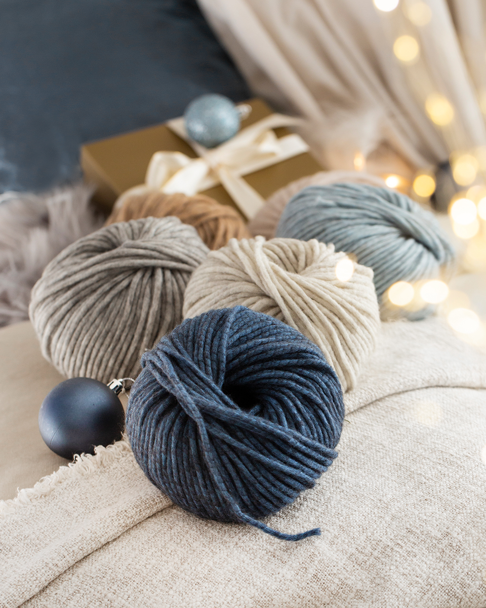 Набивная трубчатая пряжа из шерсти мериноса, хлопка и яка.