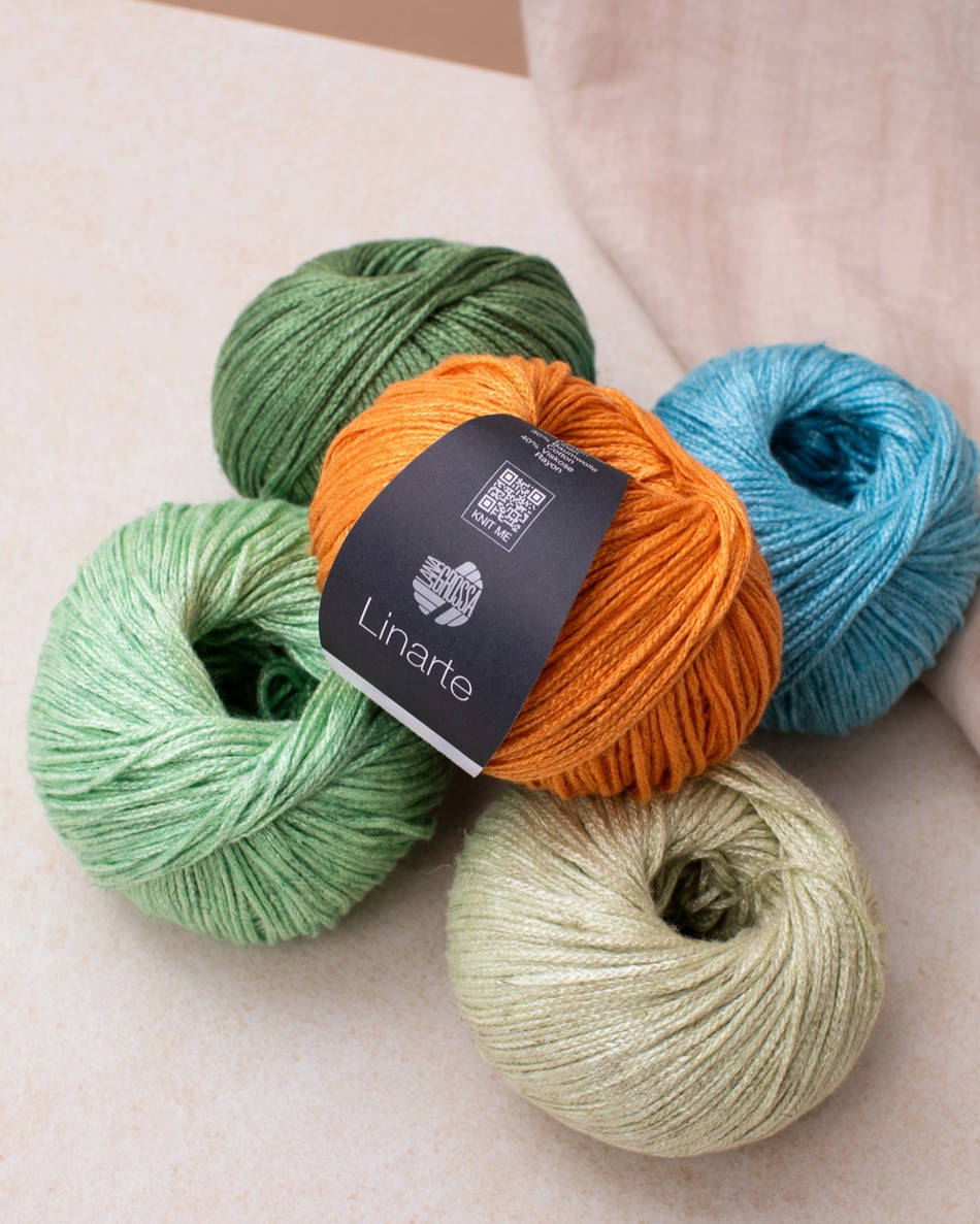 Linarte — это изысканная летняя пряжа с элегантным блеском и натуральной структурой. Особая смесь вискозы, хлопка, льна и полиамида придаёт ей приятную мягкость, прохладное прикосновение и ровное полотно с деликатным сиянием. Идеально подходит для воздушных топов, свитеров, шалей или кардиганов, которые сочетают стиль и комфорт — отличный выбор для тёплых дней с модным акцентом.
