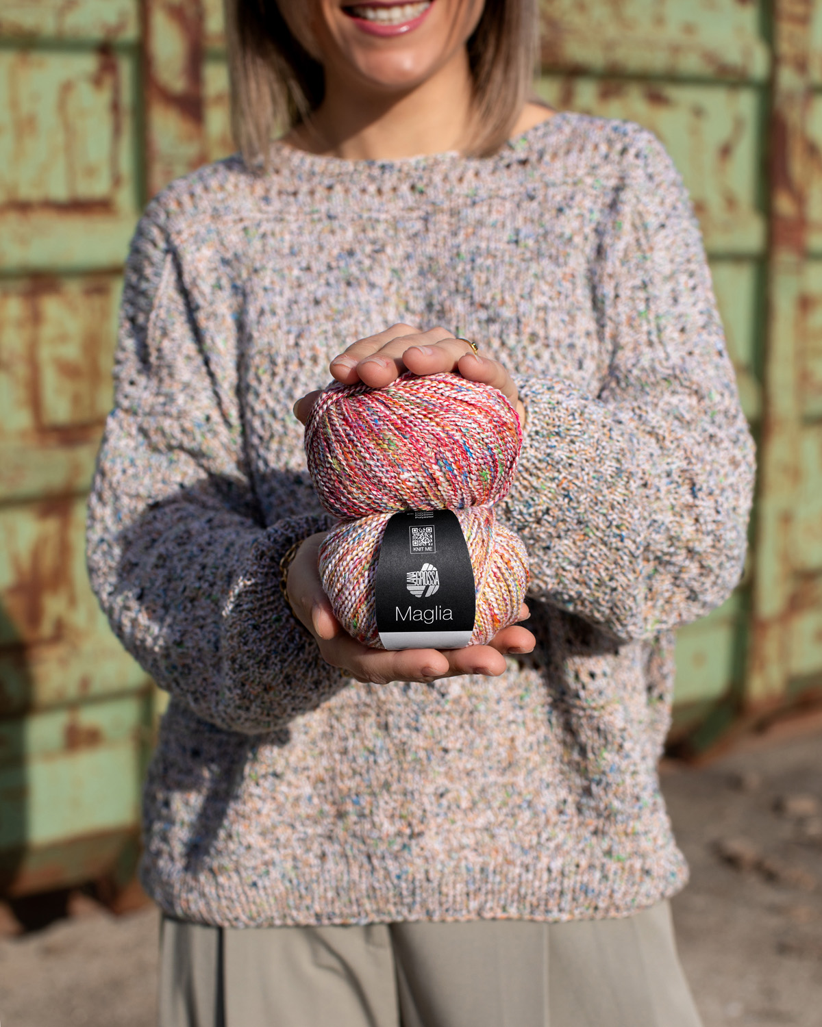 Maglia — это современная летняя твидовая пряжа из мягкого хлопка, скрученная с цветной эффектной нитью. В результате получается живое, текстурированное полотно с ненавязчивой игрой оттенков — идеально для вязаных изделий с натуральным характером и модным акцентом. Лёгкая, дышащая и приятная к коже, Maglia отлично подходит для летних свитеров, топов, жакетов или аксессуаров, которые впечатляют структурой и цветом.