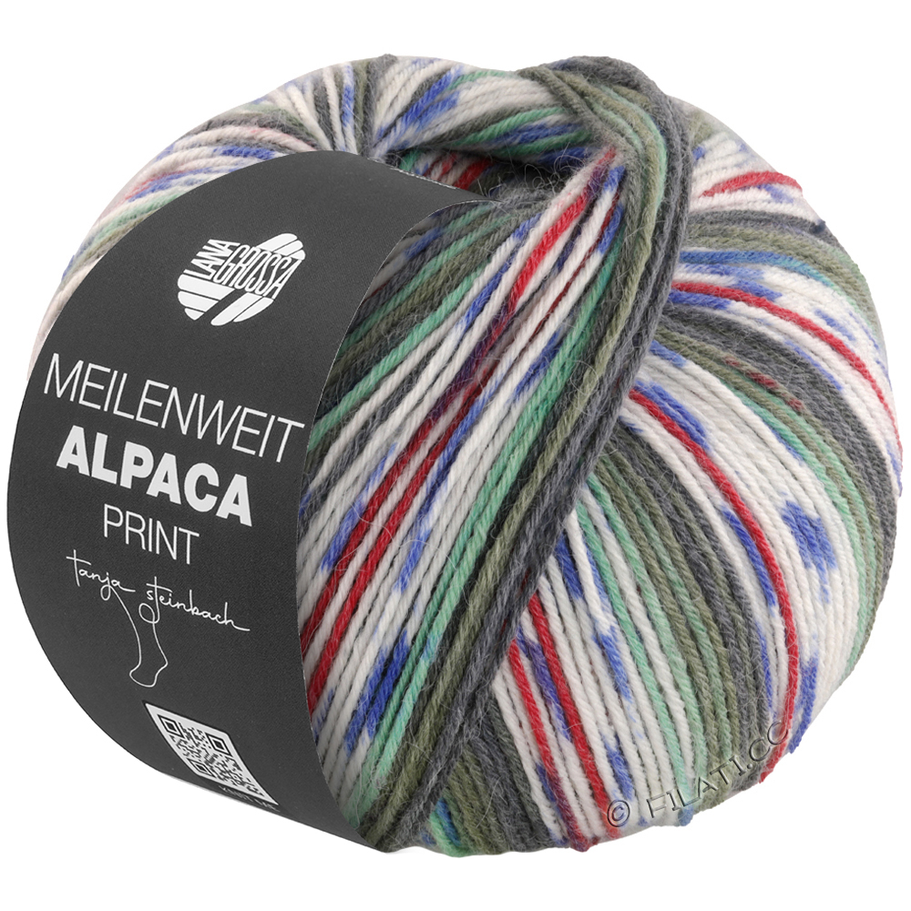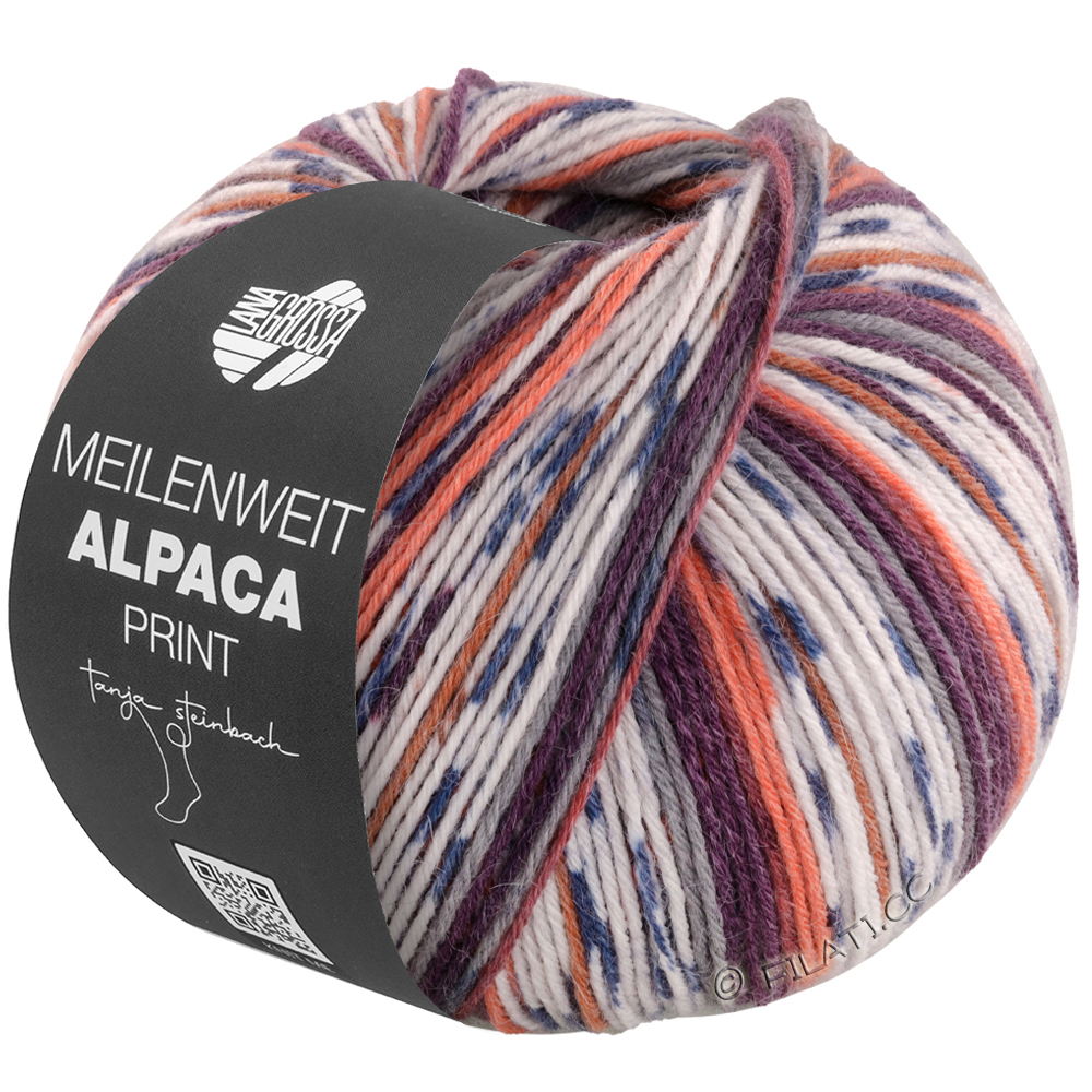 Lana Grossa Meilenweit Alpaka Print 6-fach сочетает уютную мягкость альпаки со стильными цветовыми переходами. Эта 6-ниточная носочная пряжа особенно тёплая, прочная и приятная к коже — идеально подходит для комфортных зимних носков и аксессуаров.