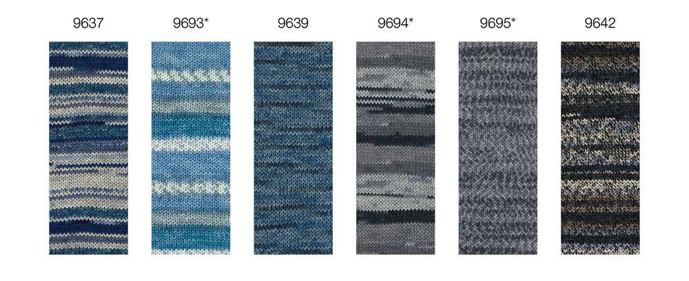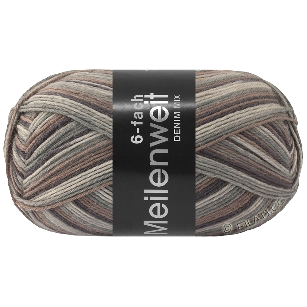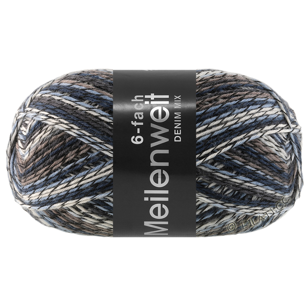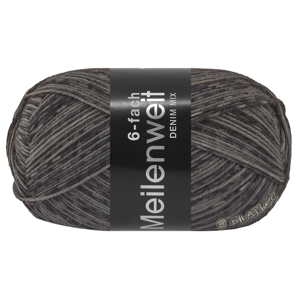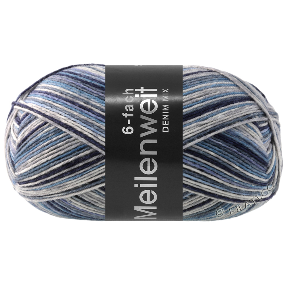 Lana Grossa Meilenweit 6-fach 150g Denim Mix сочетает модные джинсовые оттенки с уютным качеством пряжи. Эта 6-ниточная носочная пряжа из шерсти и полиамида особенно тёплая — идеально подходит для прочных и надёжных носков.