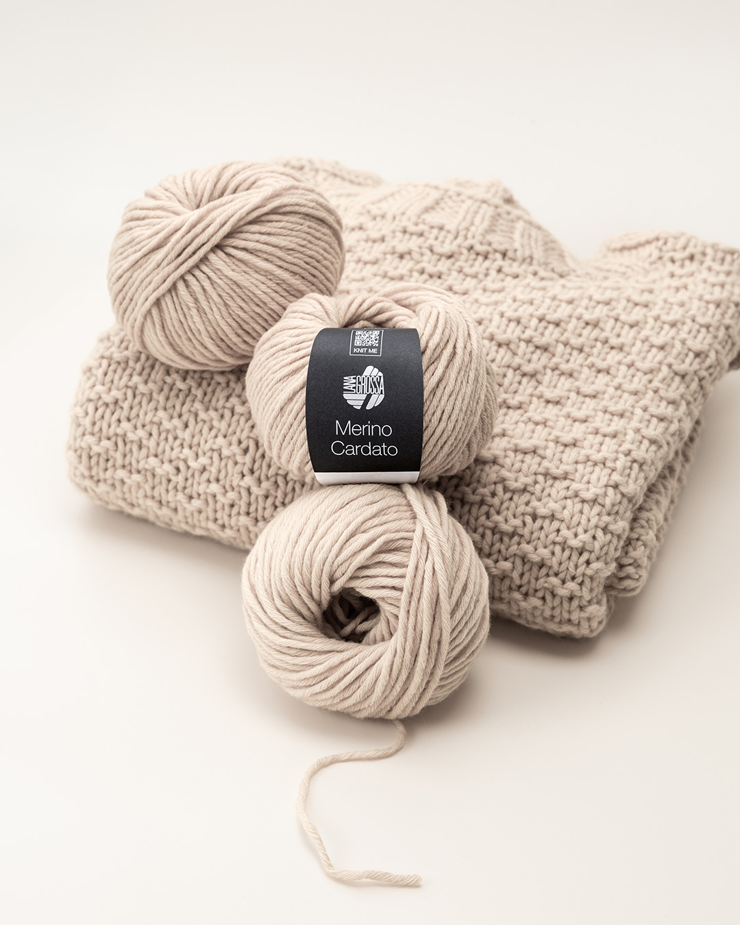 Lana Grossa Merino Cardato – изысканная мериносовая пряжа с кардированной структурой. Особенно мягкая, объёмная и тёплая, она идеально подходит для свитеров, жакетов, шарфов и аксессуаров. Естественная лёгкость обеспечивает приятный комфорт во время ношении. Идеальная пряжа для начинающих.