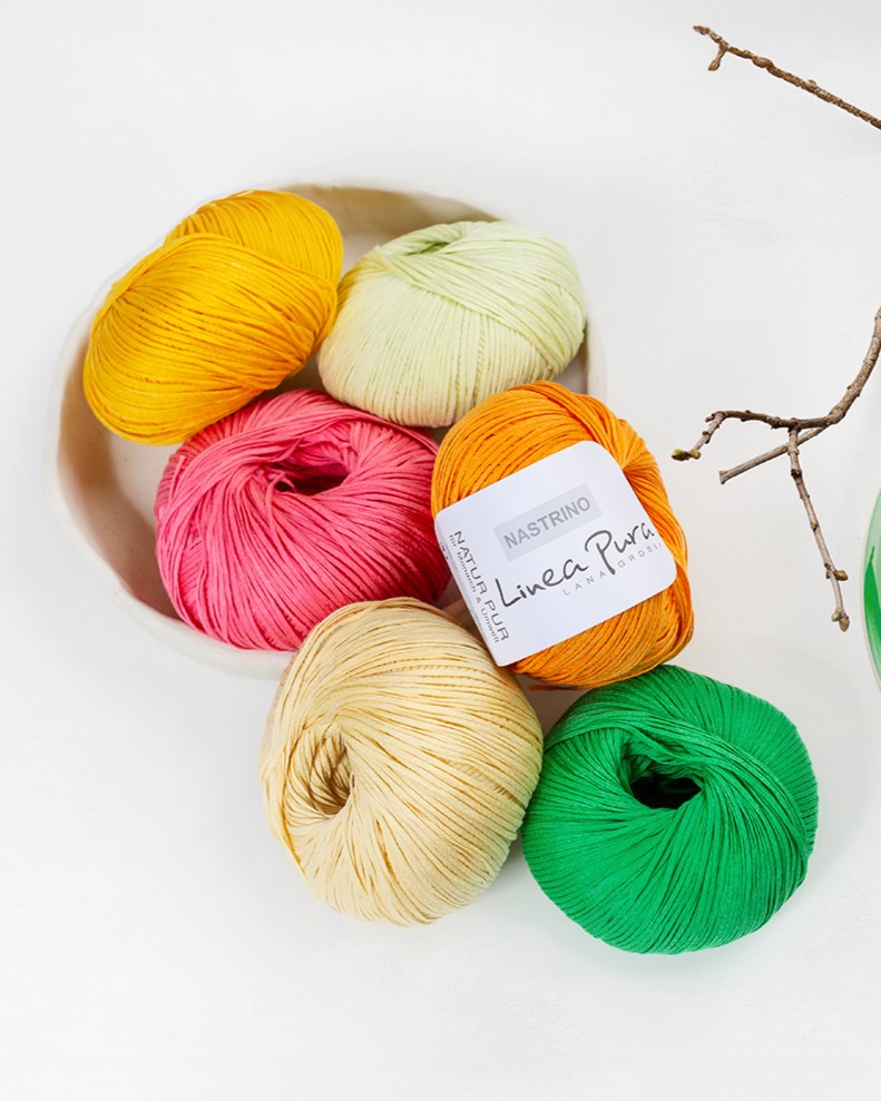 Nastrino — это лёгкая, тонкая ленточная пряжа с шелковистым блеском и мягким драпированием — идеально подходит для воздушных летних моделей с элегантным акцентом. Гладкая структура создаёт ровное, чёткое полотно и обеспечивает особенно приятные ощущения на коже. С пряжей Nastrino легко воплощать женственные, современные образы, в которых гармонично сочетаются лёгкость и стиль.