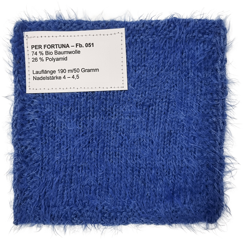 Per Fortuna — это экологичная цепочечная пряжа с уютной пушистостью и особенно мягким прикосновением. Она производится из органического хлопка и переработанного полиамида и имеет сертификат GOTS — идеальный выбор для тех, кто хочет вязать осознанно и с заботой об окружающей среде, не жертвуя комфортом.