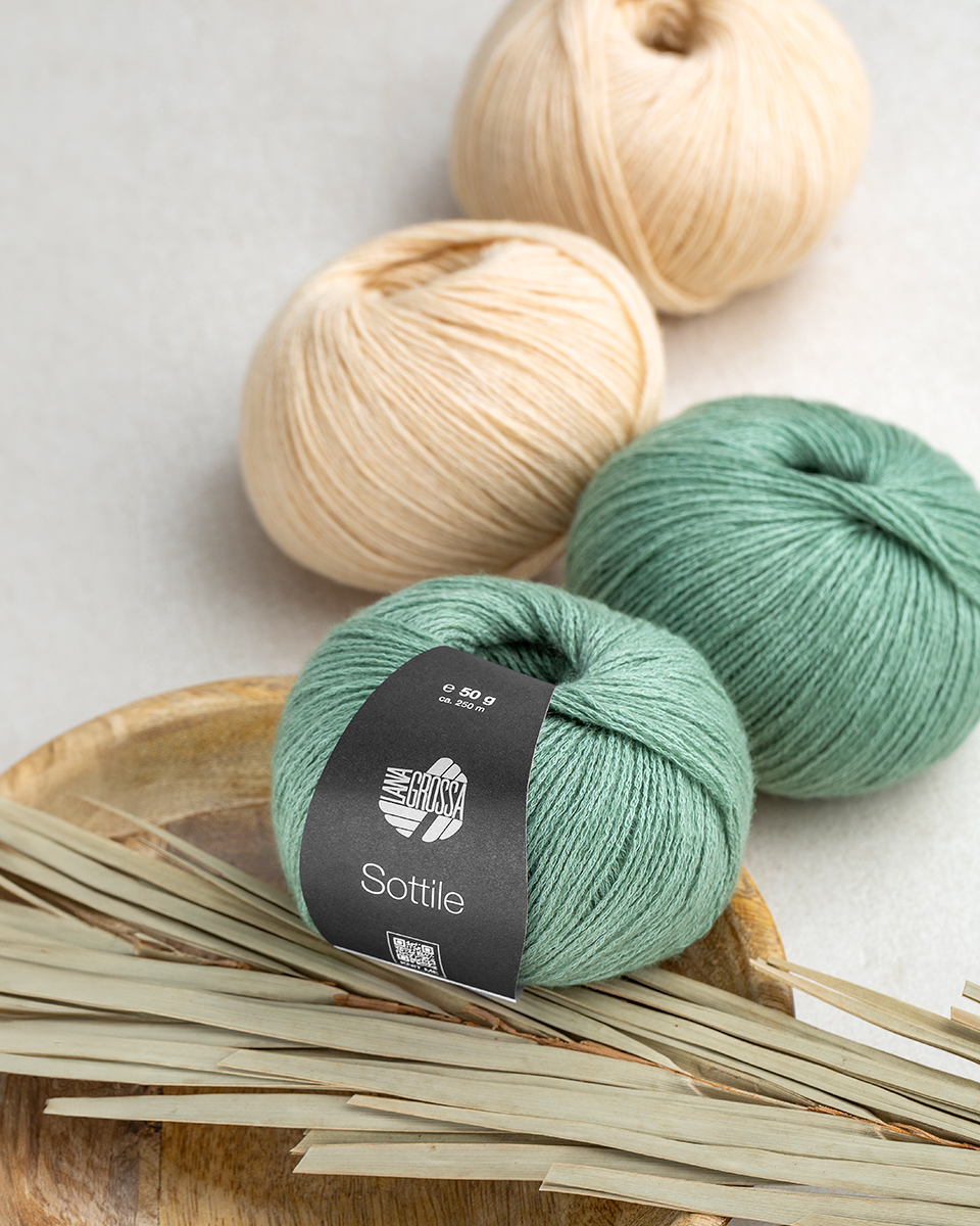 Sottile — это тонкая, гладкая летняя пряжа из высококачественной хлопковой смеси. Она отличается прохладной на ощупь текстурой, ровным и аккуратным рисунком петель и естественно элегантным внешним видом.