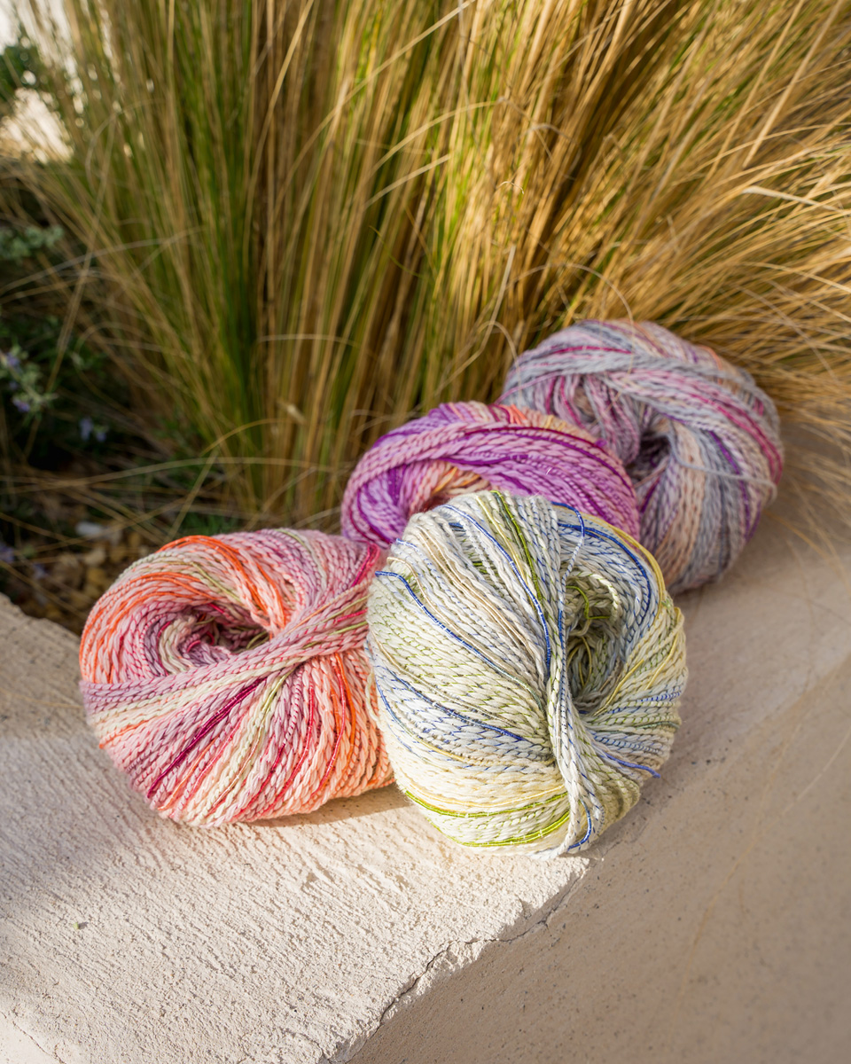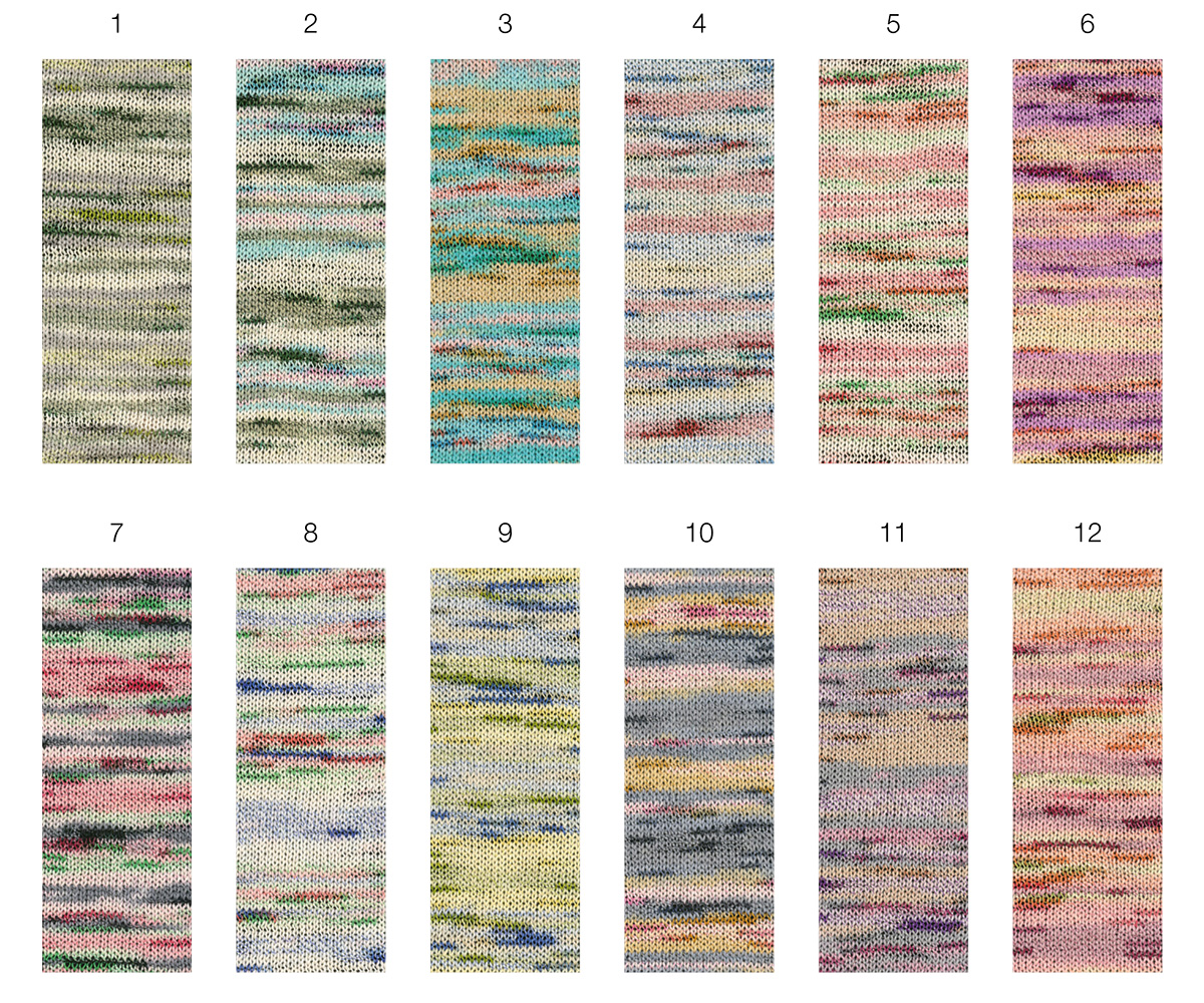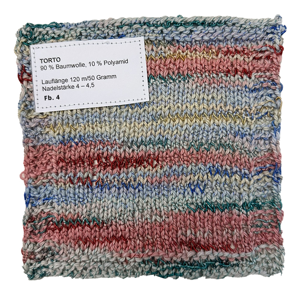 Torto — это креативная хлопковая пряжа с эффектом, который сразу вдвойне привлекает внимание: основная нить имеет мягкий меланжевый цветовой переход и дополнительно неравномерно обвита тонкой блестящей нитью. В результате получается живое, текстурированное полотно с лёгким блеском и естественной глубиной.