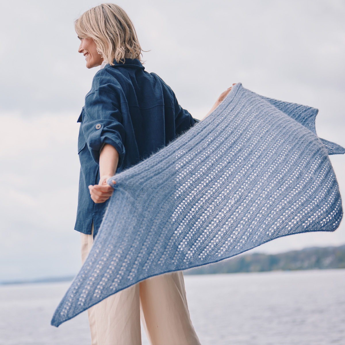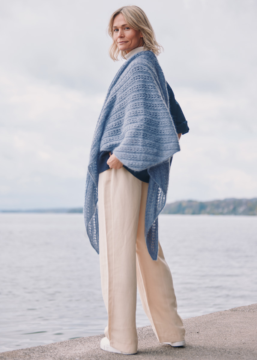 Lana Grossa Cool Wool Lace (100 % шерсть (меринос), длина нити 400 m/50 g), 100 г светло синий (цв 2) и Lana Grossa Silkhair (70 % мохер (суперкид), 30 % шёлк, длина нити 210 m/25 g), 100 г голубой (цв 92); 1 кр. сп. № 5, 80 см