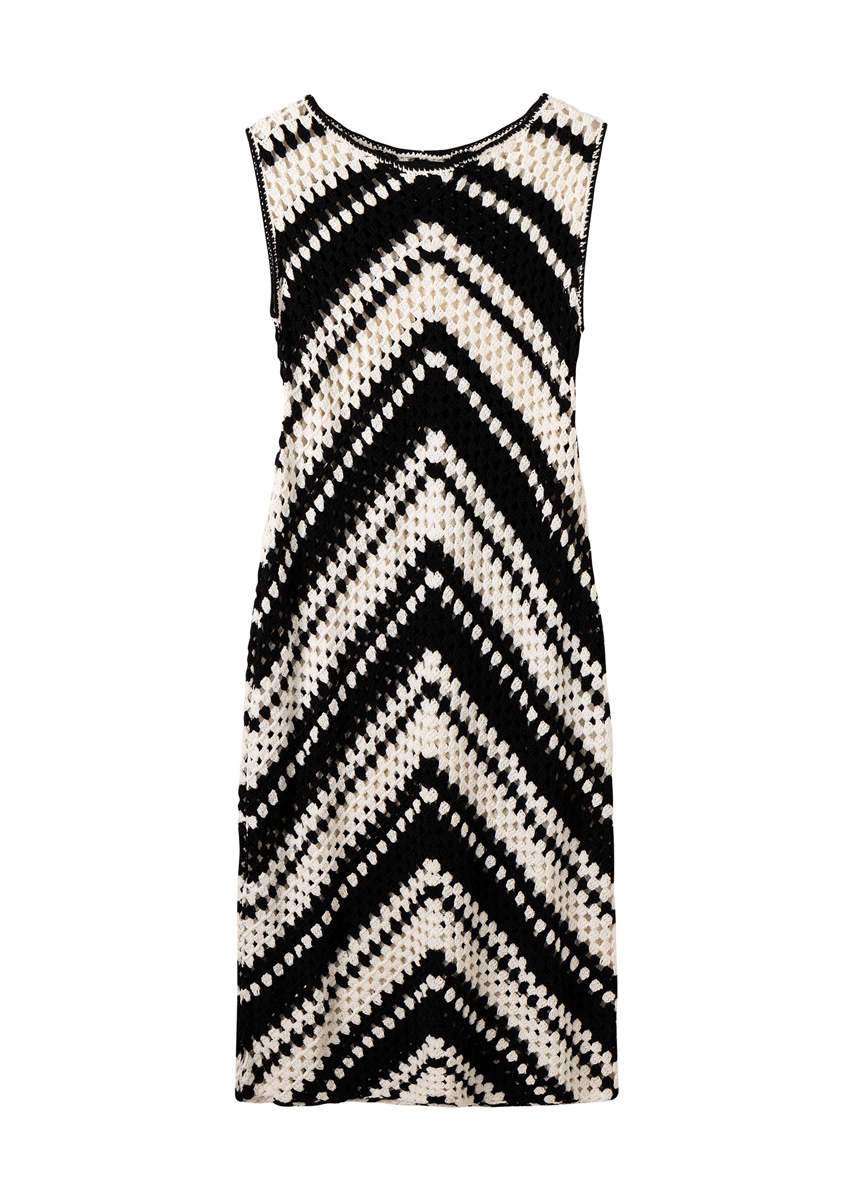 Lana Grossa-Qualität „Elastico” (96 % хлопок, 4 % полиэстер (Elité), длина нити = ca. 160 m/50 g): по ок. 300 г чёрный (цв. 24) и экрю (цв. 36); 1 крючок № 3.
