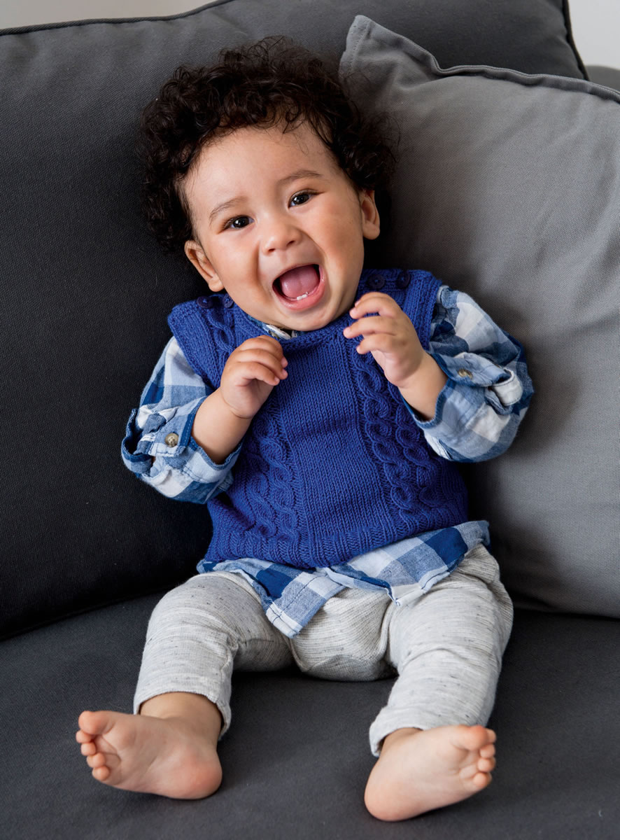 100 (100) 150 г темно-синей (цв. 250) пряжи Cool Wool Baby (100% шерсти, 220 м/50 г) фирмы Lana Grossa; прямые спицы № 3; чулочные спицы № 3; крючок № 3; набор для изготовления помпонов; четыре пуговицы.
