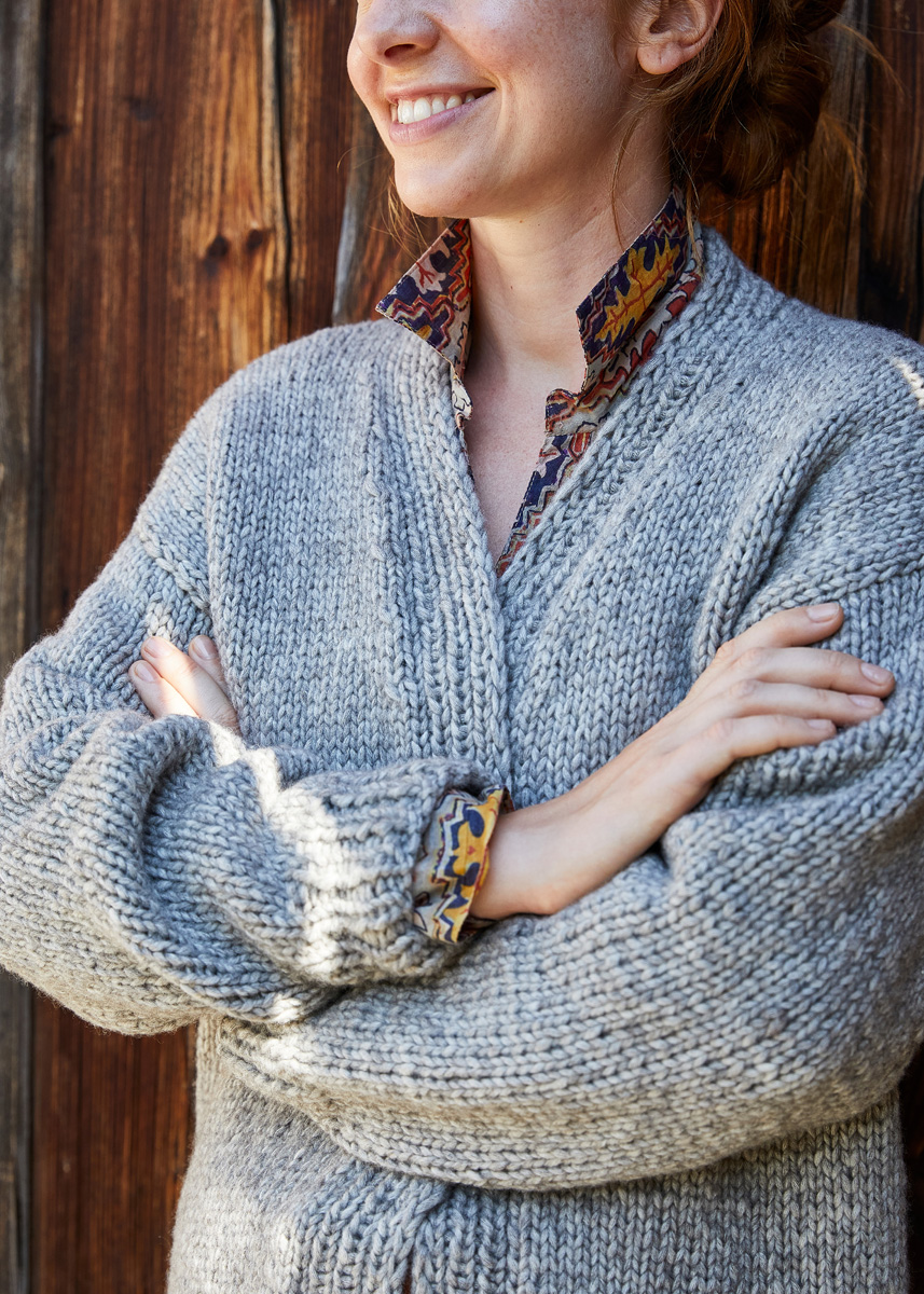 Lana Grossa-Qualität „Landlust Winterwolle“ (50% меринос, 35% хлопок, 15% як, длина нити 70 m/50 g), 800 (850 - 900 - 950) г светло-серый меланжевый (цв 9); сп. № 7 и № 8
