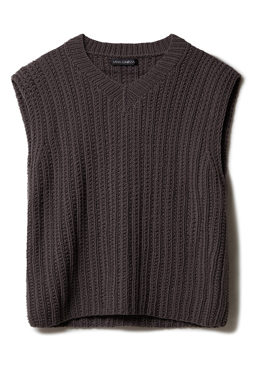 600 (650–700) г цвета шифера (цв. 129) пряжи Bingo (100% шерсти мерино экстрафайн, 80 м/50 г) фирмы Lana Grossa; прямые спицы № 5, а также круговые спицы № 4 длиной 40 см.
