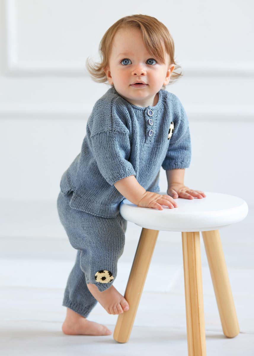 100 (100/150/150) г джинсовой (цв. 6) и по 50 г белой (цв. 1) и черной (цв. 24) пряжи Campo (65% хлопка, 25% вискозы, 10% льна, 165 м/ 50 г) фирмы Lana Grossa; круговые спицы № 3 и № 3,5 длиной 40 см, 2 чулочные спицы № 3,5, крючок № 3; 3 пуговицы диаметром 12 мм.