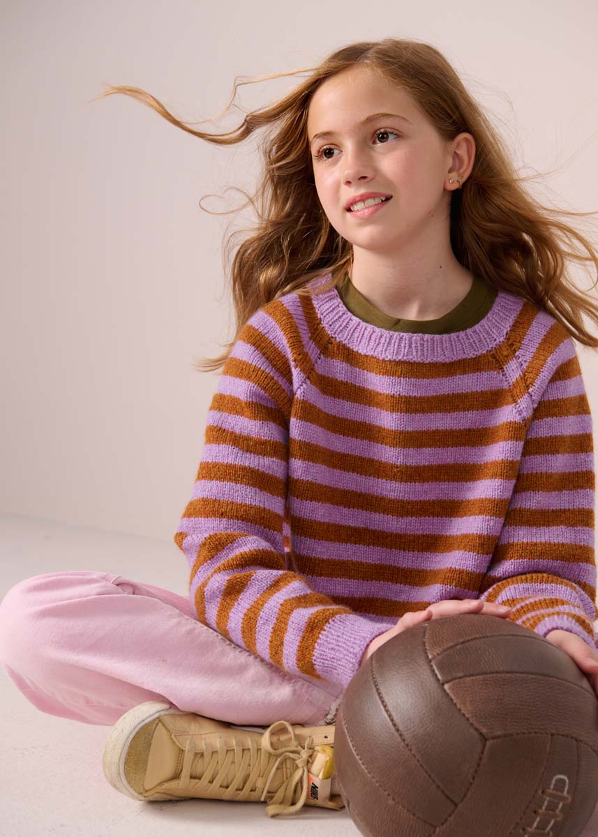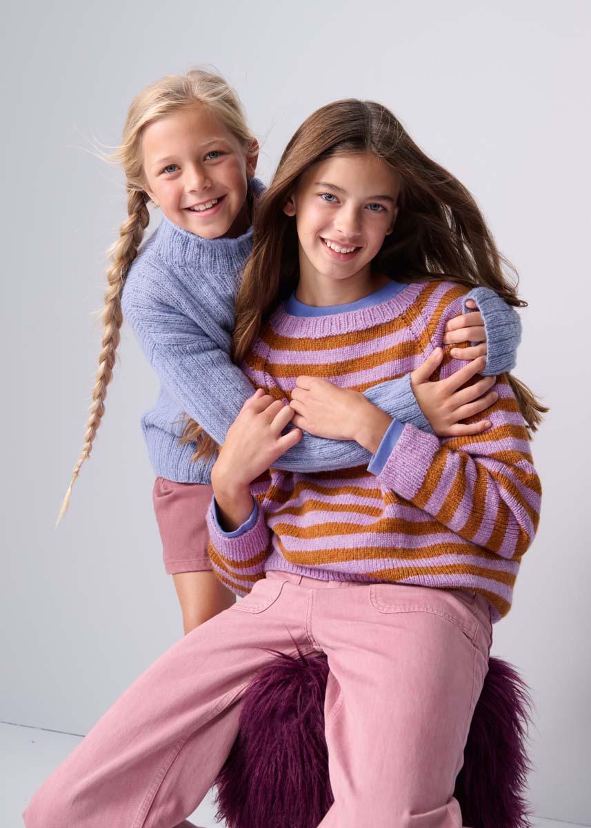 150 (200–200–200) г цвета ржавчины (цв. 18) и 200 (200– 200–250) г сиреневой (цв. 32) пряжи Cool Merino (90% шерсти мерино, 10% полиамида, 150 м/50 г) фирмы Lana Grossa; короткие и длинные круговые спицы № 4