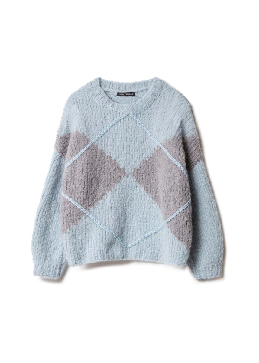 200 (250–300) г зеленовато-голубой (цв. 9) и 100 (100–150) г бежевой (цв. 11) пряжи Royal Alpaca (93% альпака royal, 7% полиамида, 95 м/ 50 г), а также 50 г светло-синей (цв. 65) пряжи Brigitte No. 2 (47% альпака бэби, 45% хлопка, 8% шерсти мерино, 140 м/50 г) фирмы Lana Grossa; прямые спицы № 5 и № 6, круговые спицы № 5 длиной 50 см, крючок № 6.