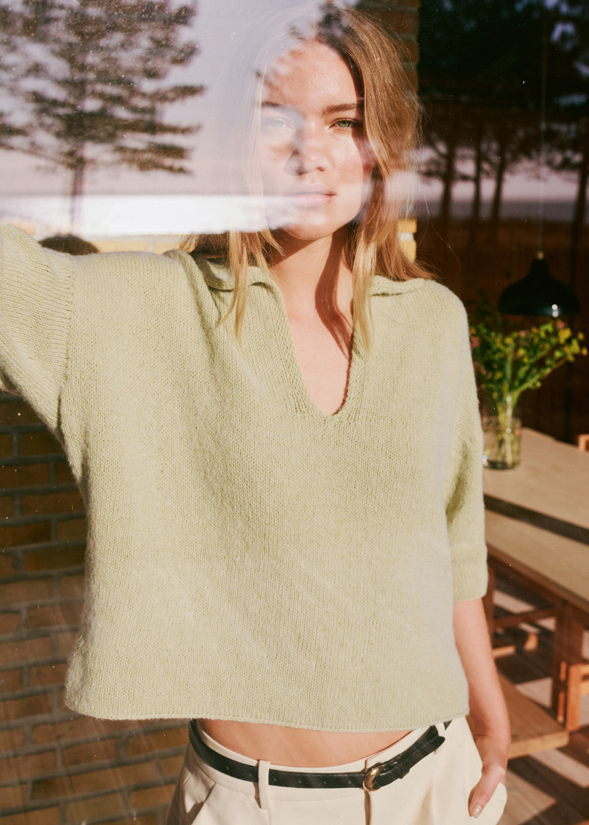 300 (350–400) г камышовой (цв. 67) пряжи Ecopuno (72% хлопка, 17% шерсти мери- но, 11% альпака бэби, 215 м/50 г) фирмы Lana Grossa, остаток тонкой гладкой хлопчатобумажной пряжи; круговые спицы № 3 и № 3,5 длиной 100 см, круго- вые спицы № 3 и № 3,5 длиной 25 см, круговые спи- цы № 3,5 длиной 40 см, круговые спицы № 3 длиной 60 см, крючок № 4.
