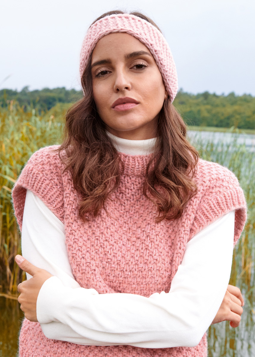 Lana Grossa Mille II (50% шерсть (меринос), 50% полиакрил, длина нити 55 m/50 g), 50 г розовый (цв 83) или оранжево коричневый (цв 129); сп. № 8