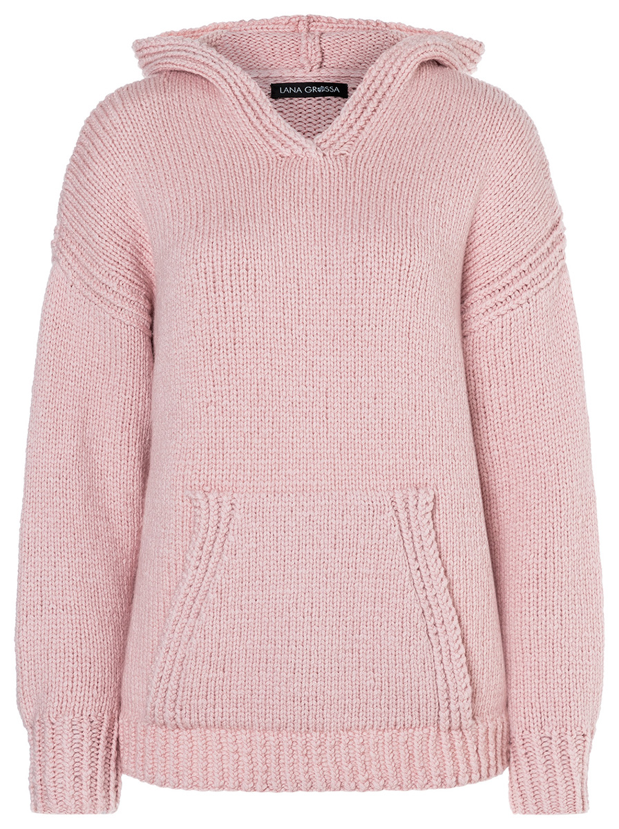 550 (600–650) г нежно- розовой (цв. 39) пряжи Alta Moda Cashmere 16 (78% овечьей (мериносовой) шер- сти, 12% кашемира, 10% полиамида, 110 м/ 50 г) фирмы Lana Grossa; прямые спицы № 6 и № 8