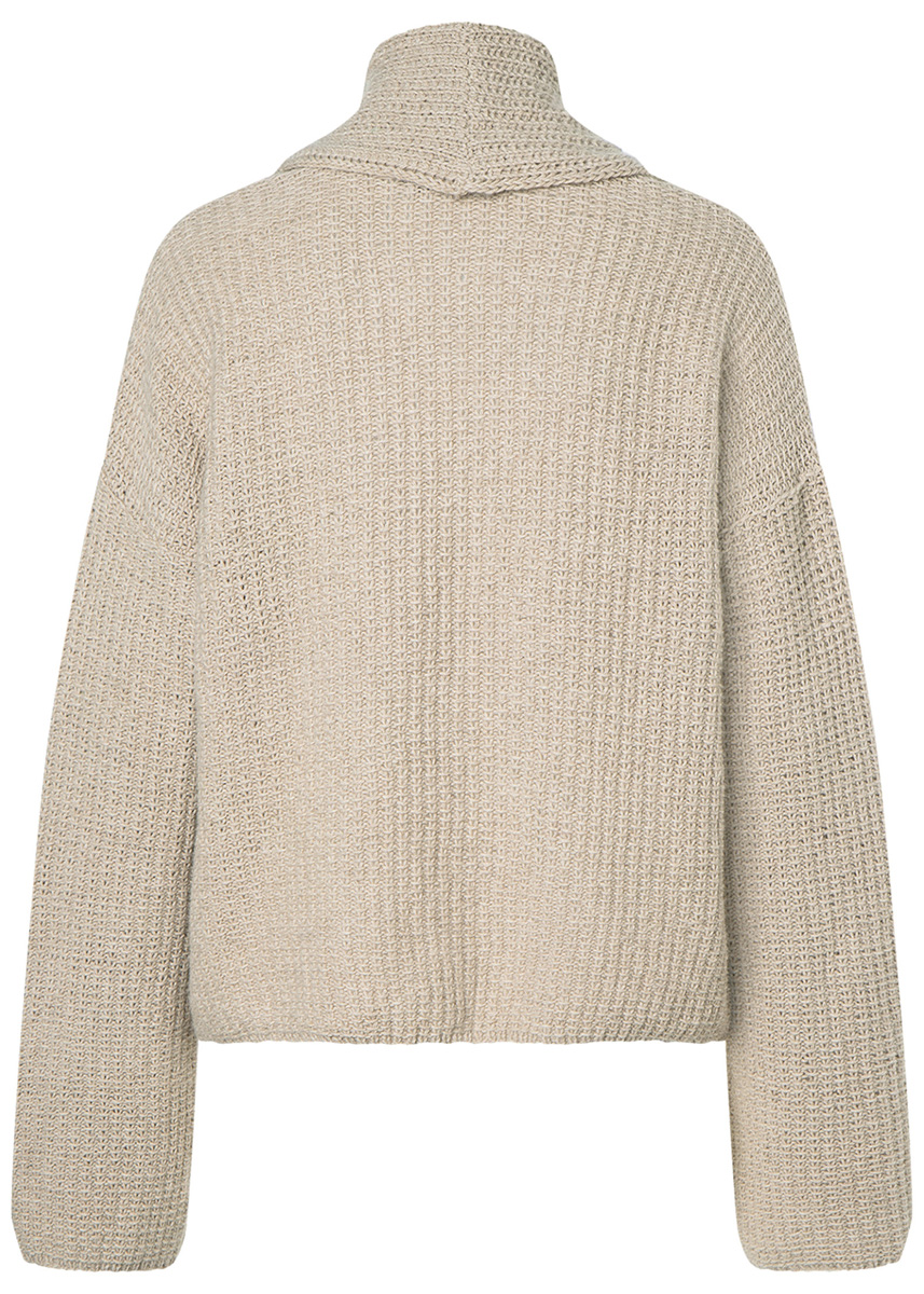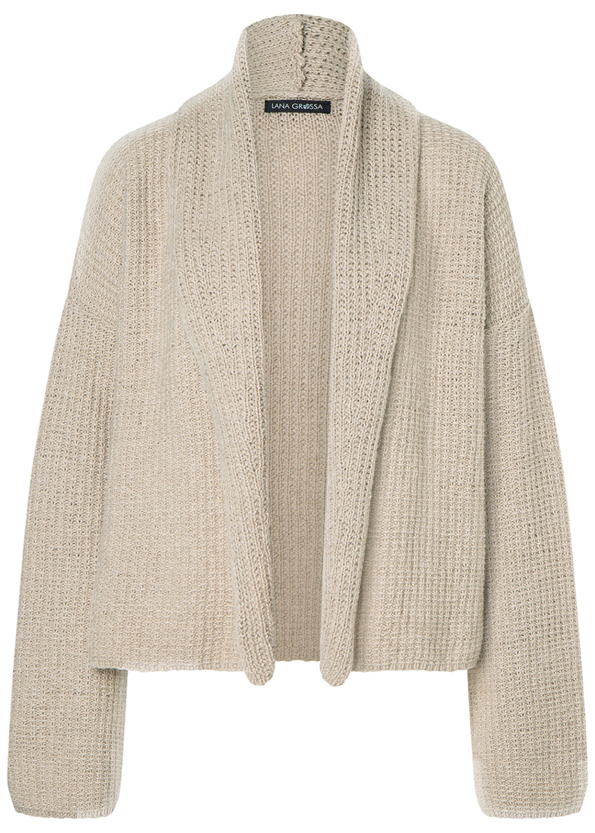525 (550–575) г бежевой (цв. 2) пря- жи Cashmere Verde (100% кашемира, 90 м/25 г) фирмы Lana Grossa; прямые спицы № 3 и № 3,5.