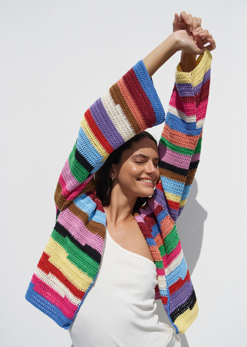 Lana Grossa-Qualität „Cotone” (100 % хлопок, длина нити = ок. 125 m/50 g): по ок. 50 г чисто белый (цв. 28), зелёный (цв. 46), лососевый (цв. 75), пинк (цв. 3), лиловый (цв. 124), коричневый (цв. 37), голубой (цв. 125), чёрный (цв. 21), огненно-красный (цв. 120) и бордо (цв. 59) и Lana Grossa- Qualität „Elastico” (96 % хлопок, 4 % полиэстер (Elité), длина нити = ок. 160 m/50 g): по ок. 50 г жёлтый (цв. 41), василек (цв. 75) и гвоздика (цв. 127); 1 крючок № 4.