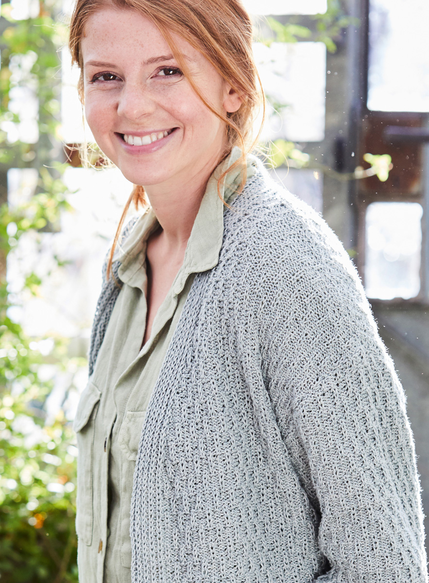 Lana Grossa-Qualität „Landlust Sommerseide“ (50% шёлк, 50% хлопок, длина нитки ок. 170 m/50 g), ок. 550 (600 - 650 - 700) г серо-зелёный (цв 5); спицы № 3