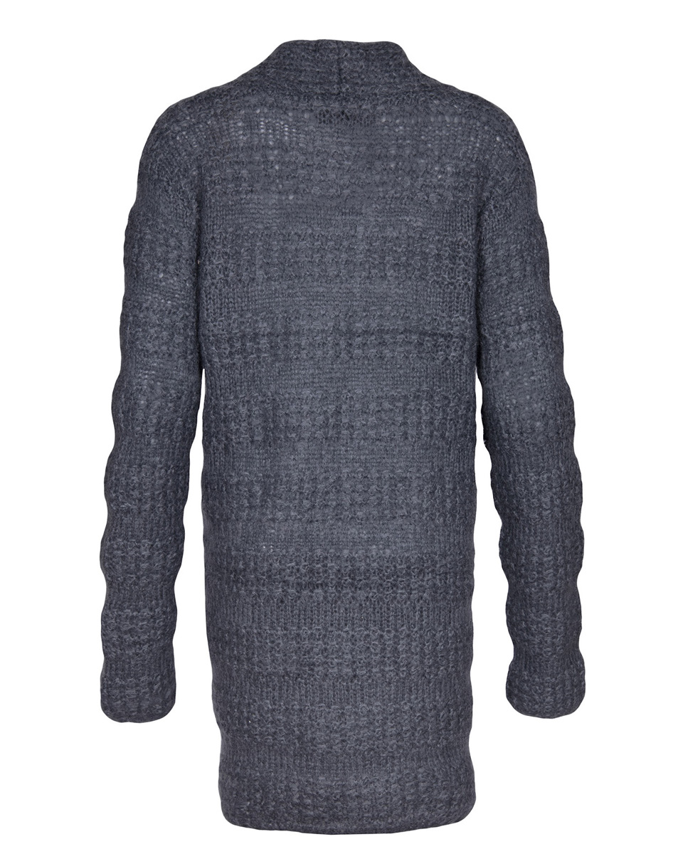 Lana Grossa Silkhair (70 % мохер, 30 % шелк, длина нити: 210 m / 25 g) 400 (450 – 475) г тёмно- серый (цв 12); спицы №. 4 и 5, крючок 4
