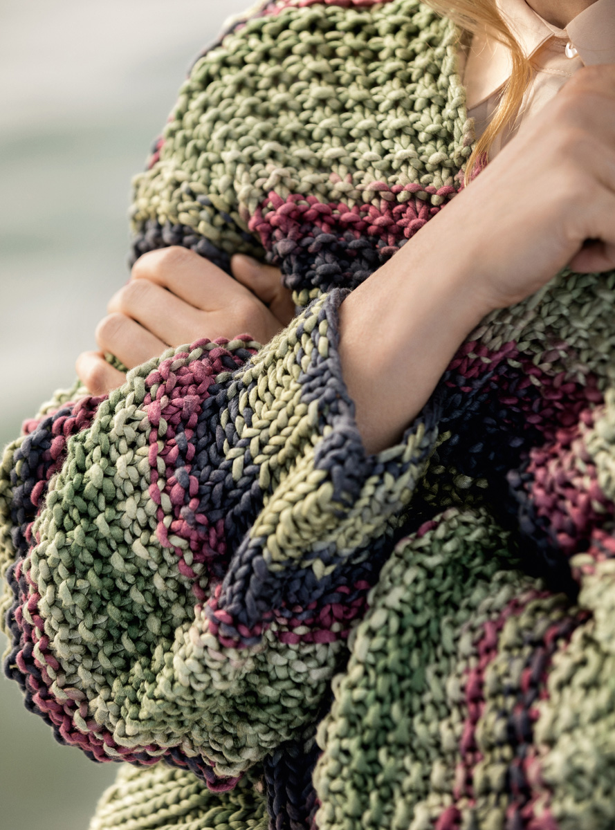 Lana Grossa About Berlin Bulky (50% хлопок, 50% микромодаль, длина нитки 47 m/50 g), 600 (650 – 700) г тростник зеленый/антрацитовый/ягодный/серо-зеленый цв 104); сп. № 9 и 10, 1 крючок № 8