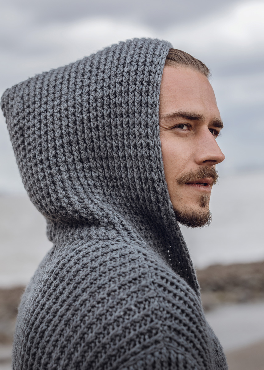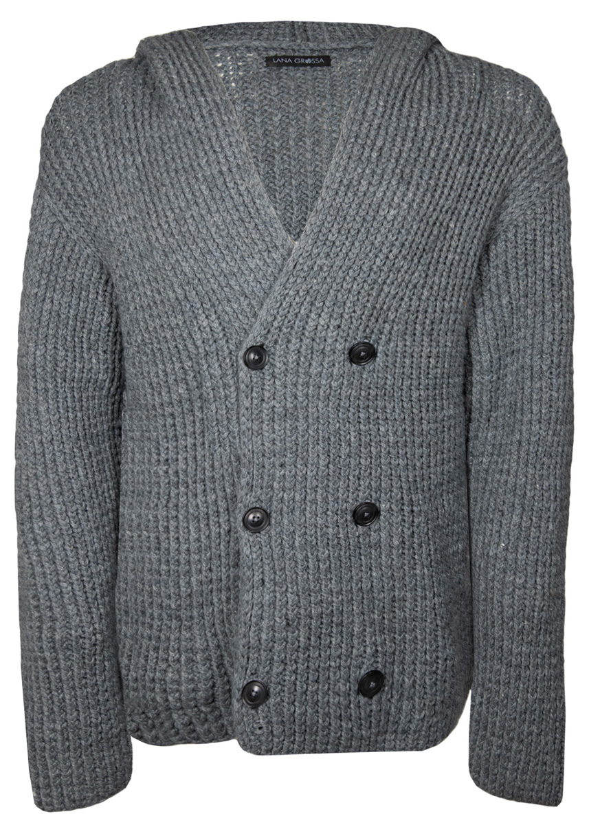 Lana Grossa Alta Moda Cashmere 16 (78% меринос, 12% кашемир, 10% полиамид, длина нити 110 m/50 g), 900 (950 – 1000) г темно серый (цв 25); сп. № 7 и 8, 6 пуговицы от UNION KNOPF, арт. 453094, цв 78, размер 25 мм
