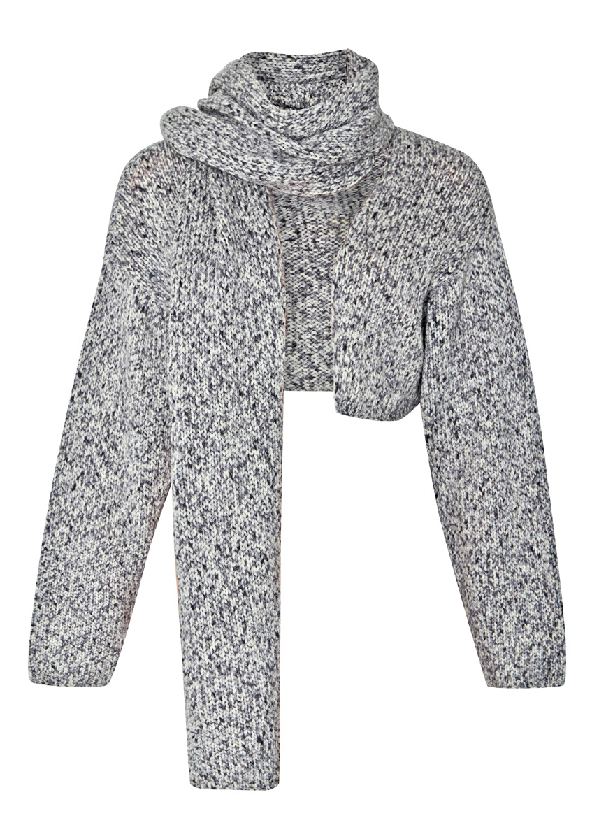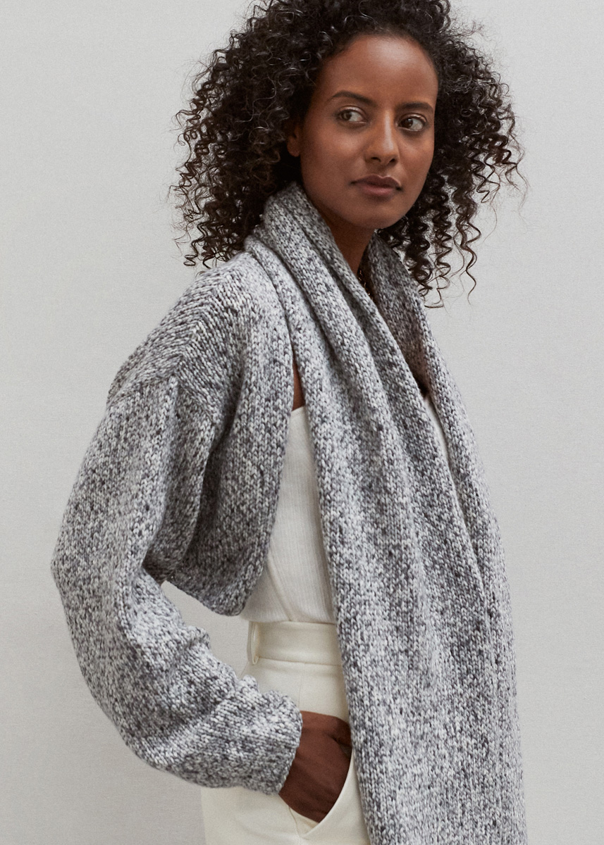 Lana Grossa-Qualität „Cool Merino Print“ (90 % шерсть (меринос), 10 % полиамид, длина нити 150 m/50 g): ок. 500 (550–600) г чисто-белый/светло-серый/тёмно- серый (цв. 107); сп. № 7