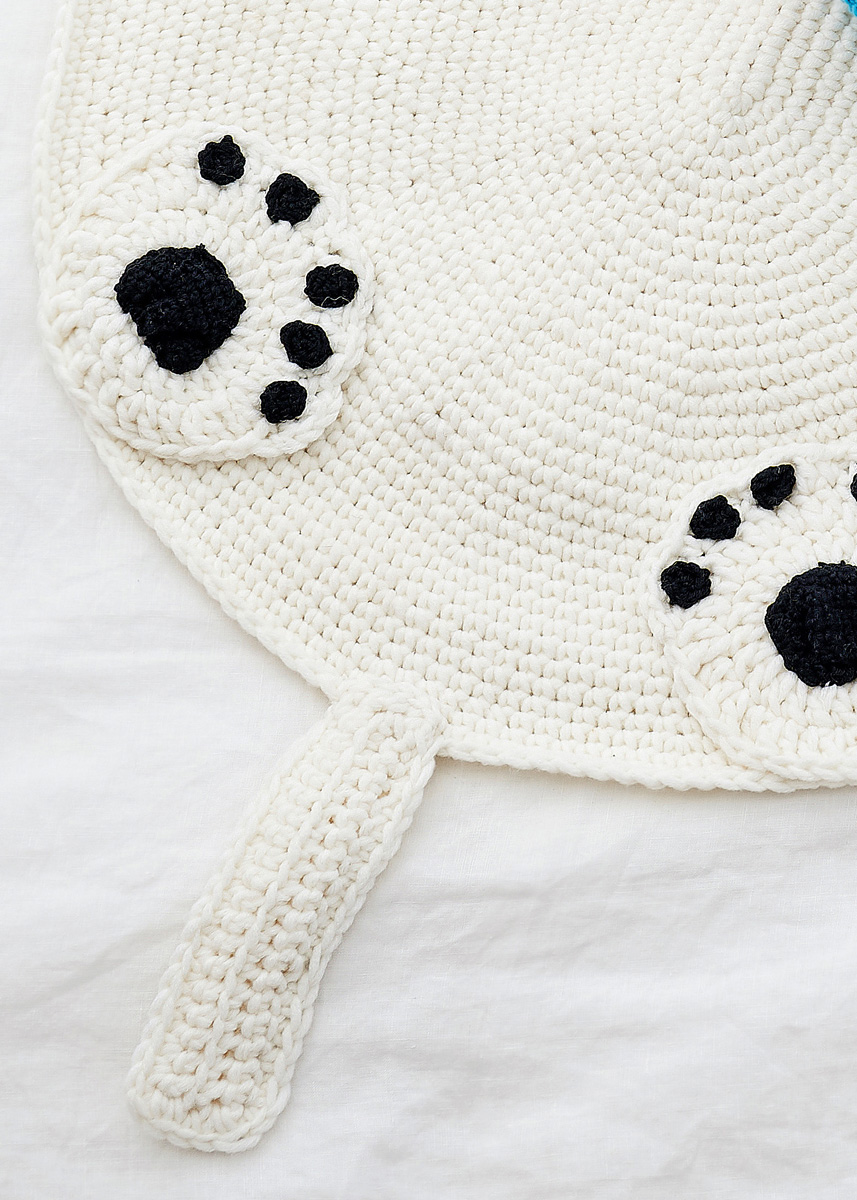 850 г белой суровой (цв. 17) и 50 г черной (цв. 15) пряжи Mille II (50% овечьей (мери- носовой) шерсти, 50% полиакрила, 55 м/50 г) и 100 г черной (цв. 2402) пряжи Meilenweit 100 Merino Extrafine (75% овечьей шерсти (мериносовой шерсти экстрафайн), 25% полиамида, 420 м/100 г) фирмы Lana Grossa; крючок № 4 и № 6