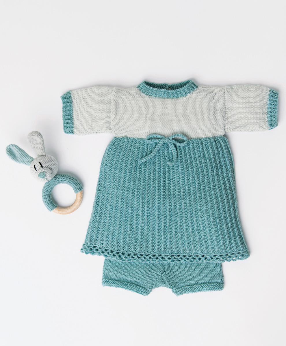 Lana Grossa Cool Wool Baby (100 % шерсть, длина нити 220 m/50 g) 50 г светло бирюзовый (цв 257), 50 г мята (цв 261), 50 г светло зелёный (цв 265) и 50 г чёрный (цв 278); крючок № 2,5; ватка; кольцо из дерево 7 смм диам