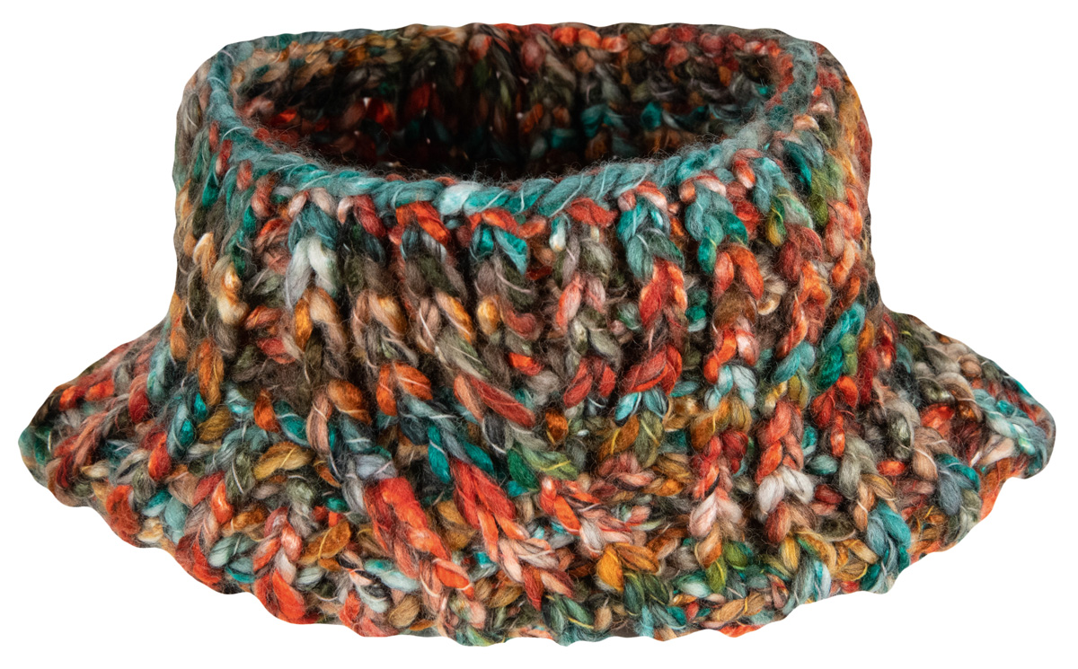 Lana Grossa „Allegra“ (52% шерсть, 48% полиакрил; длина нити 50 m/100 g), 300 г красный/ оранжевый/бирюзовый/серо-коричневый (цв 4); кр. сп. № 10, длиной 40 см