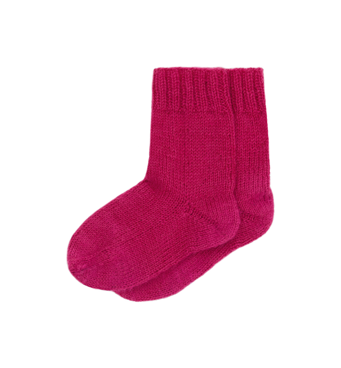 50 г ярко-розовой (цв. 1313) пряжи Meilenweit 50 (80% шерсти, 20% полиамида, 210 м/50 г) фирмы Lana Grossa; чулочные спицы № 3