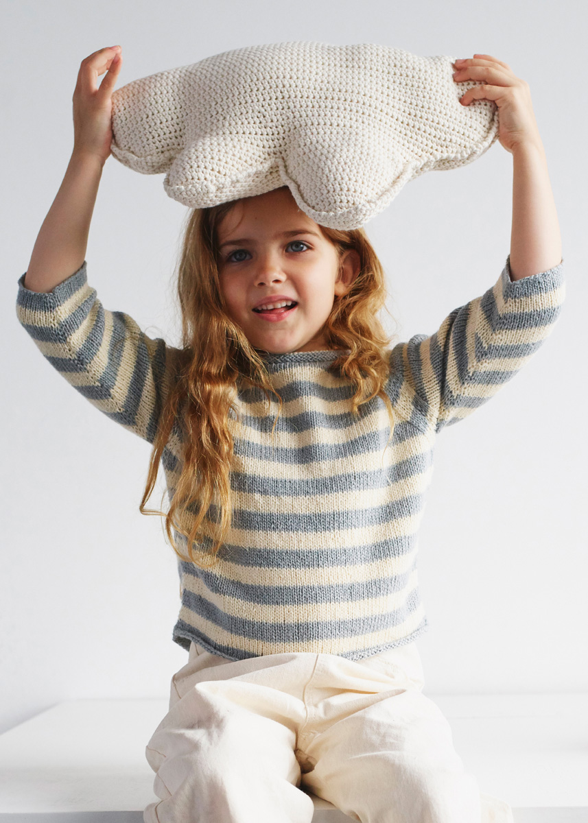 150 г цвета экрю (цв. 2) пряжи Riserva (70% биохлопка, 30% ре- циклированного полиамида, 125 м/50 г) фирмы Lana Grossa; крючок № 3,5; 120 г ватки для набивки