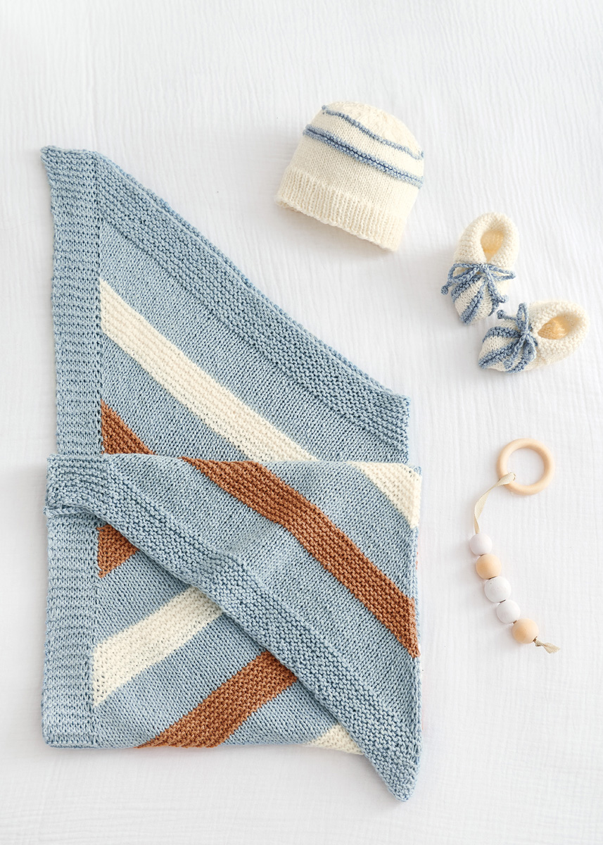 Lana Grossa Alta Moda Cotolana (45 % шерсть, 45 % хлопок, 10 % полиамид, длина нити 150 m/50 g) 200 г зеленовато-голубой (цв 11), 50 г белый (цв 18) и 50 г коричневый цвет корицы (цв 3); сп. № 4,5