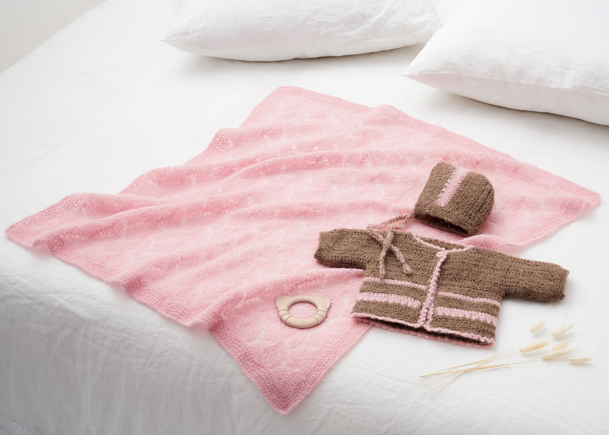 75 г розовой (цв. 8) пряжи Setasuri (69% шерсти сури альпака, 31% шелка, 212 м/25 г) фирмы Lana Grossa; прямые спицы № 4, крючок № 4
