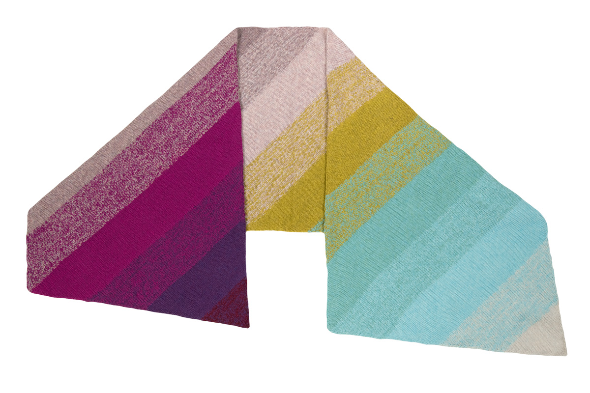 Lana Grossa „Ecopuno“ (72 % хлопок, 17 % шерсть (меринос), 11 % альпака; длина нити 215 m / 50 g); по 50 г серо- бежевый (цв 18), бордо (цв 35), бирюзовый (цв 28), зеленый пастель (цв 38), жёлто-зеленый (цв 3), сирень (цв 8), пурпурный (цв 30), малиновый (цв 22) и ягодный (цв 40); сп. № 7.