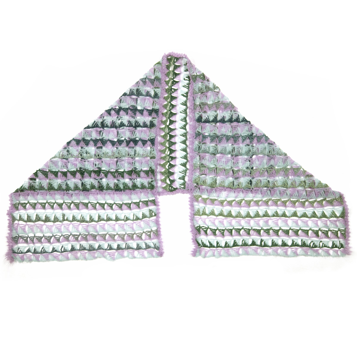 Lana Grossa Mare (50% лён, 33% шёлк, 17% хлопок, длина нити 330 m/100 g), 200 г светло-серый/серо- синий/джинс/мята/светлый сине-голубой/тростник (цв 10) и Lana Grossa Silkhair (70% мохер (суперкид), 30% шёлк, длина нити 210 m/25 g), 75 г сирень (цв 173) и 50 г мята (цв 175); 1 крючок № 3,5