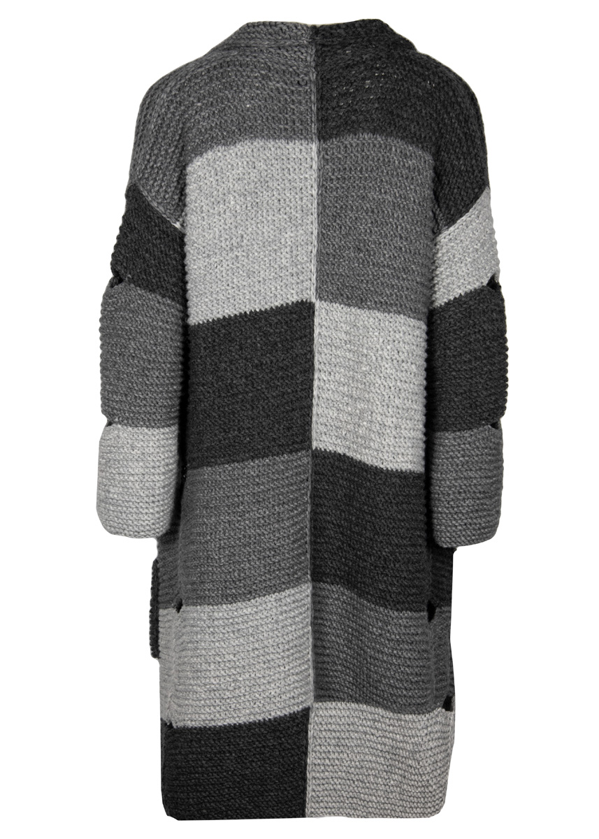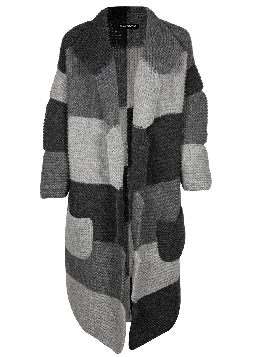 Lana Grossa „Lala Berlin Lovely Cotton“ (75% шерсть, 25% хлопок; длина нитки 90 m/50 g), по 400 (450/500) г светло серый (цв 5) и антрацит (цв 8) а также 350 (400/450) г темно серый (цв 19); сп. № 7