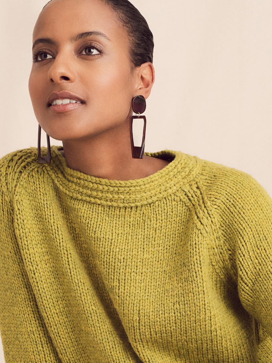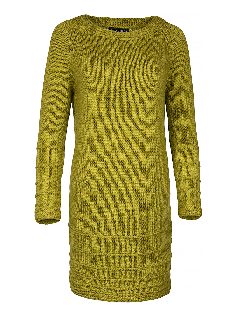 Lana Grossa-Qualität „Alta Moda Cashmere 16“ (78 % меринос, 12 % кашемир, 10 % полиамид, длина нитки 110 m/50 g): ок. 550 г горчичный/оливковый (цв. 36); сп. № 7, 1 кр. сп. №. 7, 50 см длиной
