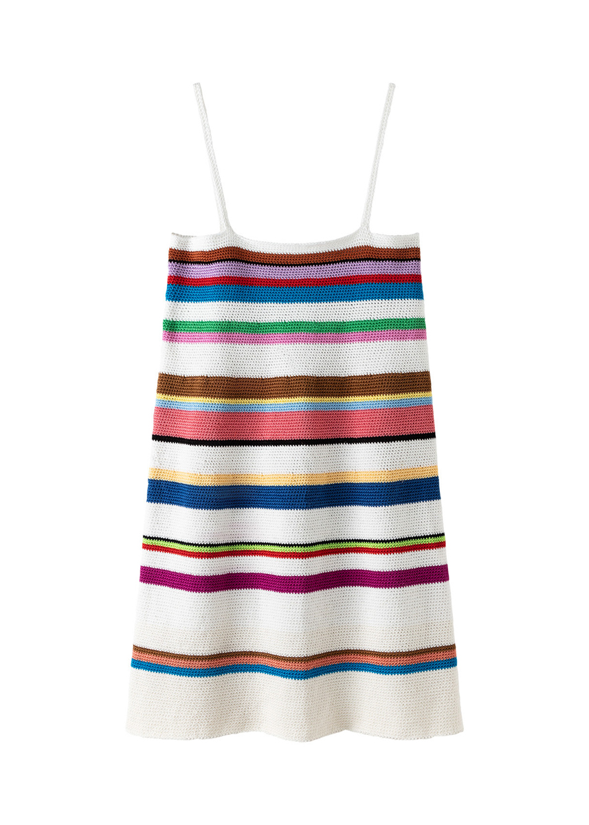 Lana Grossa-Qualität „Cotone” (100 % хлопок, длина нити = ок. 125 m/50 g): по ок. 50 г ржавчина (цв. 113), зелёный (цв. 46), жёлтый (цв. 129), гвоздика (цв. 2), фиалка (цв. 123), жёлтый (цв. 16), огненно красный (цв. 120), бирюзовый (цв. 10), коричневый (цв. 37), голубой (цв. 125), коралловый (цв. 131), чернила (цв. 90), светло зелёный (цв. 36), лоссосевый (цв. 75), чёрный (цв. 21) и цикламеновый (цв. 42) и Lana Grossa-Qualität „Elastico” (96 % хлопок, 4 % полиэстер (Elité), длина нити = ок. 160 m/50 g): ок. 300 (300– 350) г экрю (цв. 36); 1 крючок № 4.