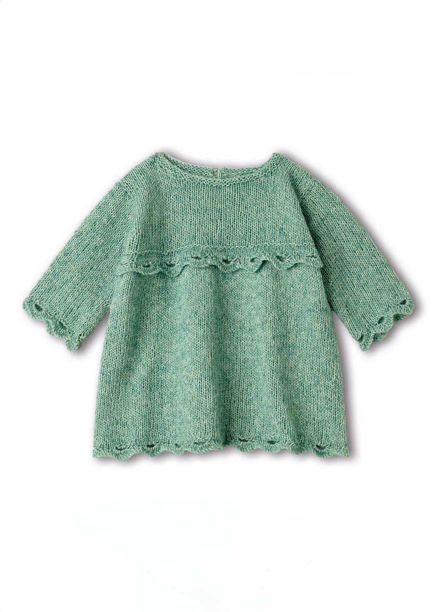 100 (100/150/150) г бледно-зеленой (цв. 97) пряжи Ecopuno (72% хлопка, 17% шерсти мерино, 11% альпака бэби, 215 м/50 г) фирмы Lana Grossa; круговые спицы № 3, 2 пары круговых спиц № 3,5 длиной 40 см; 1 пуговица диаметром 12 мм.