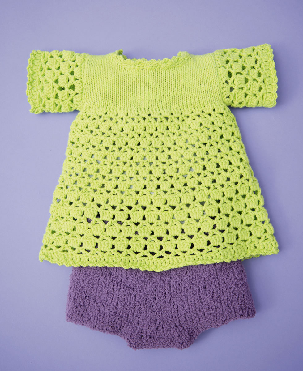 100 (100) 150 г ядовито-зеленой (цв. 113) пряжи Elastico (96% хлопка, 4% полиэстера, 160 м/50 г) фирмы Lana Grossa; прямые спицы № 3,5; круговые спицы № 3,5 длиной 40 см; крючок № 3,5; одна пуговица.