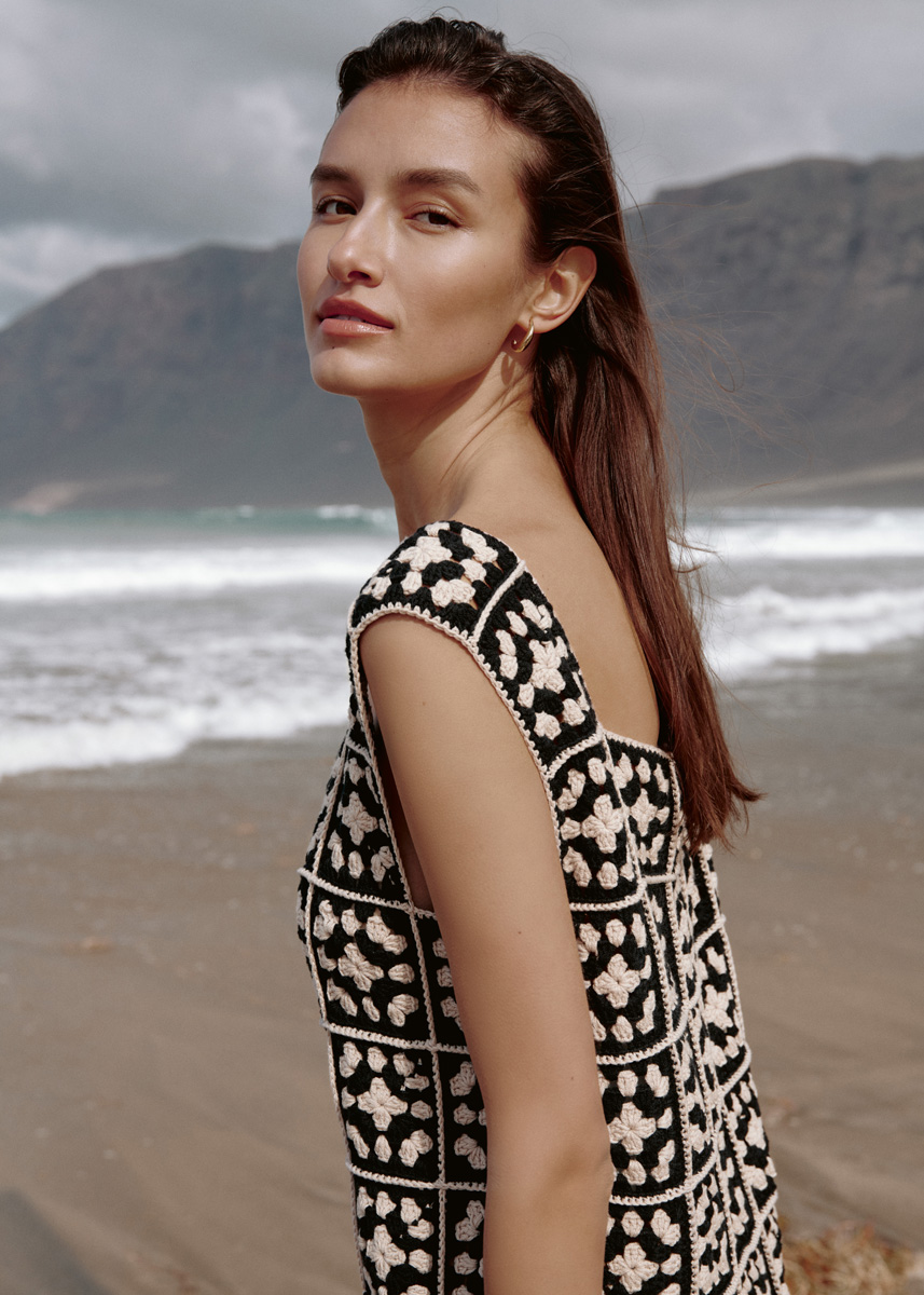 МАТЕРИАЛ: LANA GROSSA ELASTICO (96% ХЛОПОК, 4% ПОЛИЭСТЕР (ELITÉ), ДЛИНА НИТИ 160 M/50 G), ПО 250 Г БЕЖЕВЫЙ (ЦВ 97) И ЧЁРНЫЙ (ЦВ 24); 1 КРЮЧОК № 4.